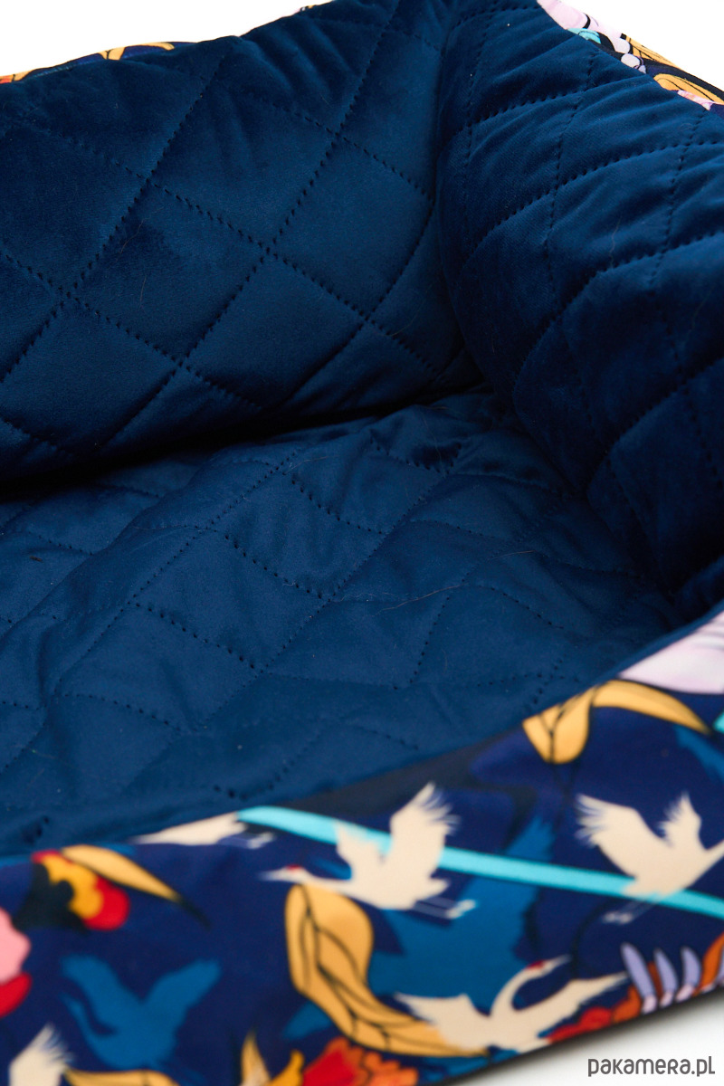 Uszyte z wyjątkowego weluru tapicerskiego - odporne na rozdarcia i ścieranie. Łagodne wejście z przodu, mocne ścianki, wyjmowana poduszka oraz antypoślizgowa podstawa.
