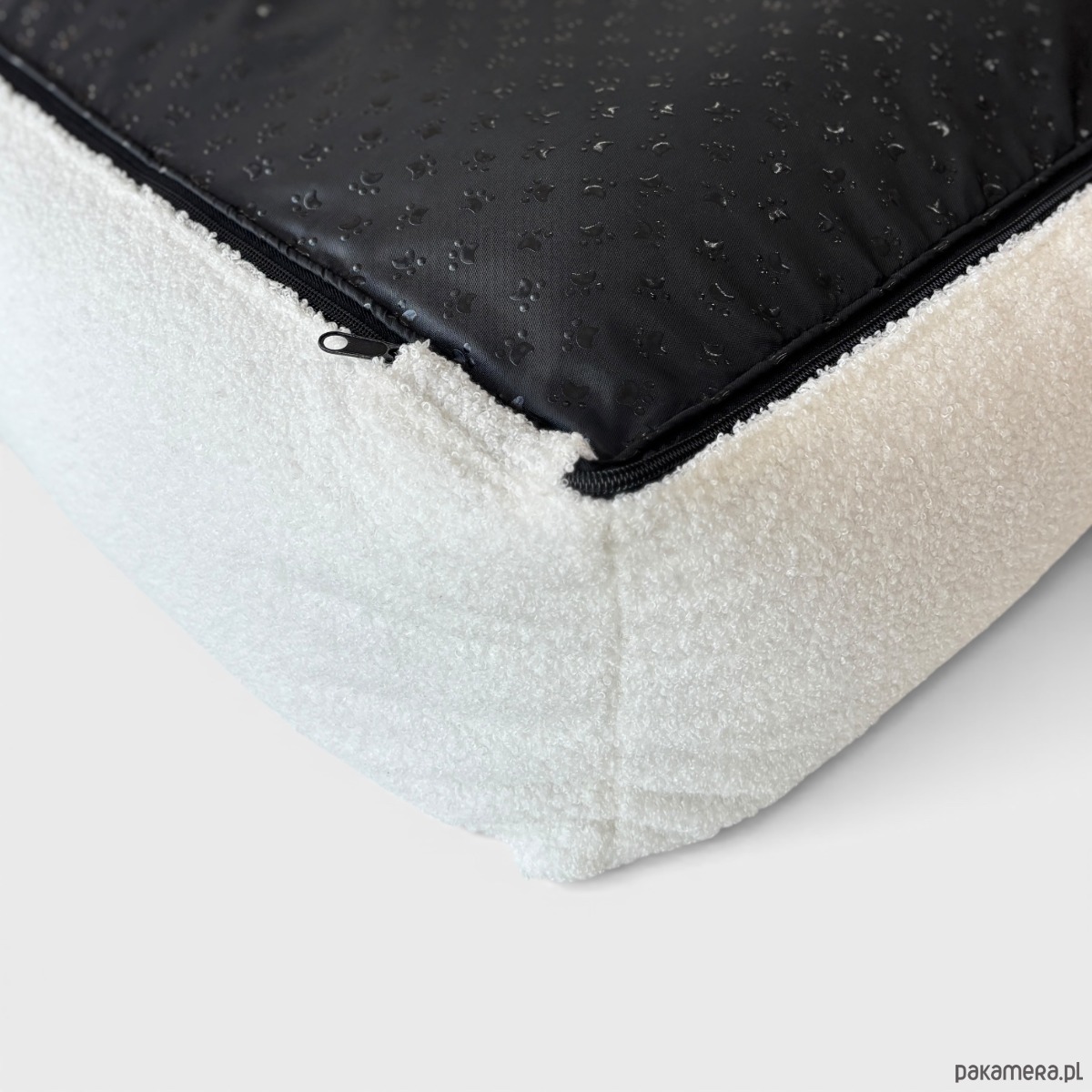 Legowisko Kanapa Boucle Biała Premium to uosobienie świeżości i czystego designu. Jasny, kremowobiały odcień materiału boucle wprowadza do wnętrza atmosferę spokoju i harmonii.