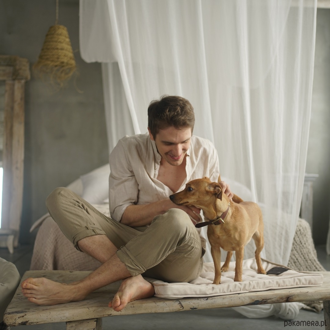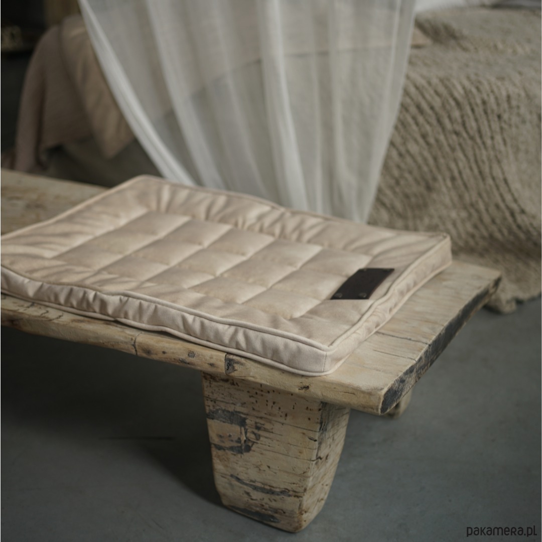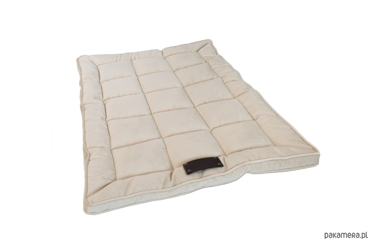 Elegancka poduszka / legowisko powstała z myślą o psiakach, które nie lubią czuć się ograniczone na swoim posłaniu. Dzięki temu, że legowisko nie posiada boczków czworonogi mają możliwość swobodnego wyciągnięcia się na posłaniu. Jak w każdym z naszych produktów dołożyliśmy wszelkich starań aby zapewnić maksimum komfortu oraz podtrzymać niepowtarzalny design. Pokrowiec został uszyty z wysokiej jakości tkanin tapicerskich z certyfikatem Oeko-Tex®. Wyjątkowy charakter podkreśliliśmy elementami ze skóry bydlęcej ( logo, które łatwo można zdemontować). Zastosowana tkanina welurowa charakteryzuje się odpornością na ścieranie i zabrudzenia. W większości przypadków zanieczyszczony materiał wystarczy przetrzeć wilgotną szmatką. Wnętrze poduchy stanowi włóknina wysokopuszysta, która charakteryzuje się dużą sprężystością. Jest lekka, przewiewna i odporna na odkształcenia. Całość zaprojektowana z dbałością o najmniejszy szczegół – tak aby produkt był komfortowy zarówno dla użytkownika jak i właścicieli czworonogów. Niespotykany design wraz ze skórzanymi dodatkami dopełni i wpisze się w każde wnętrze niezależnie od panującego w nim stylu.