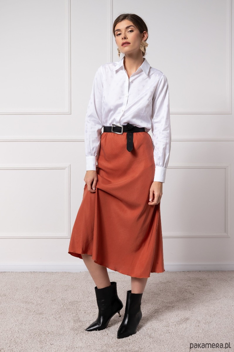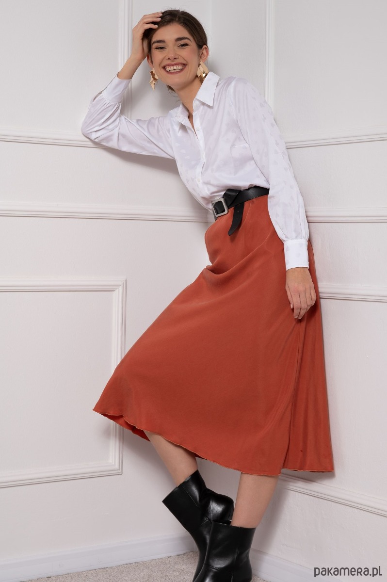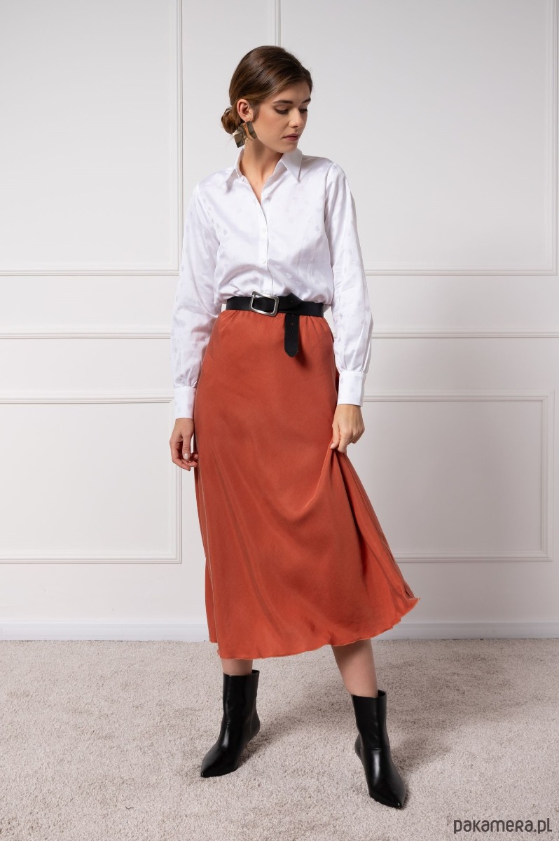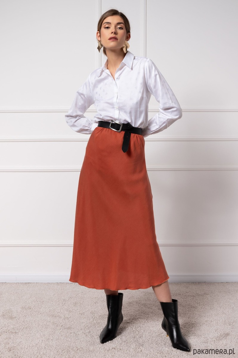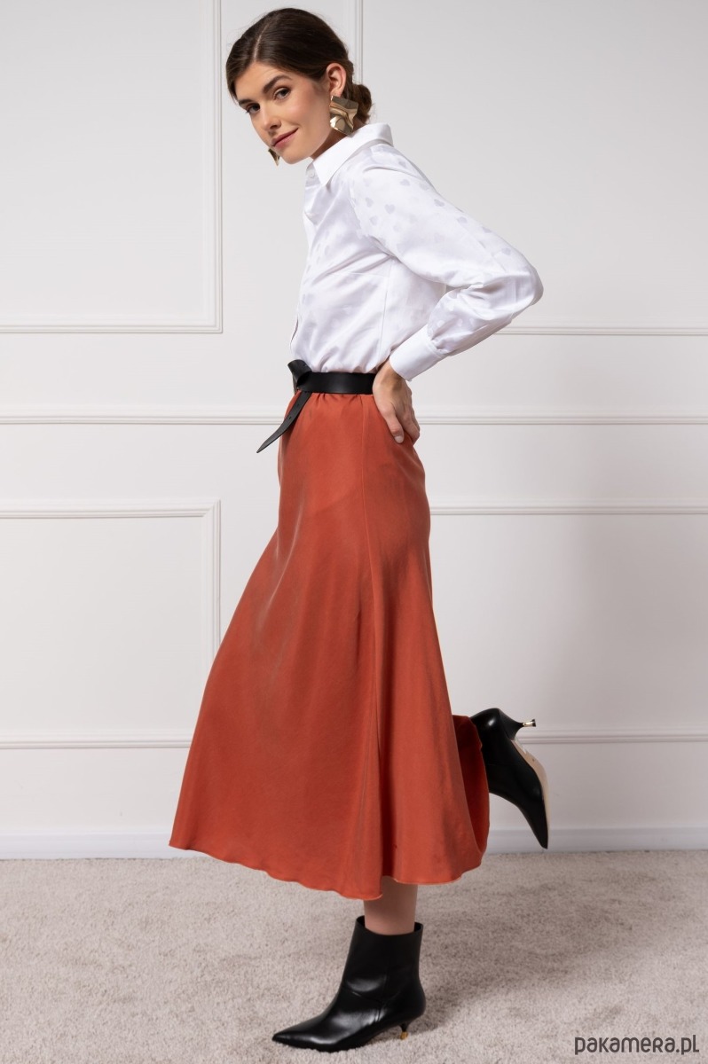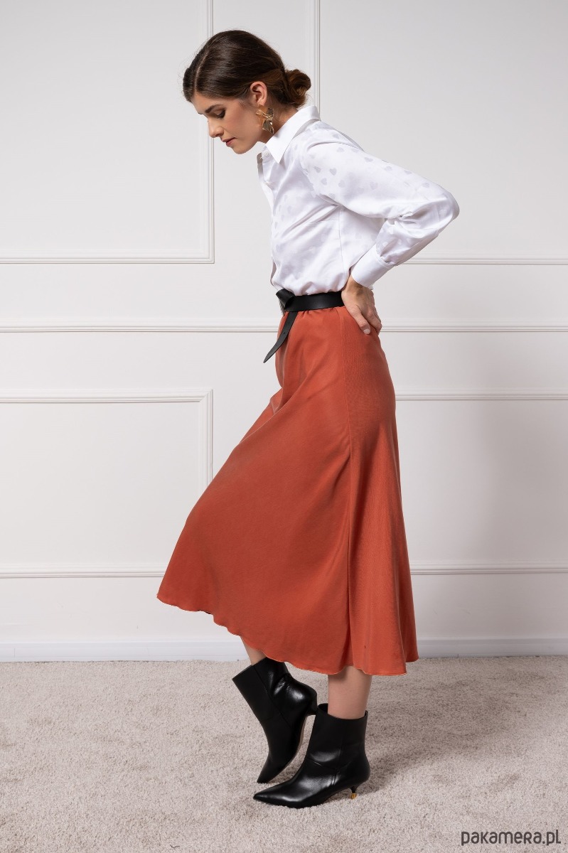 Spódnica uszyta jest ze skosu, dzięki czemu pięknie układa się na sylwetce.