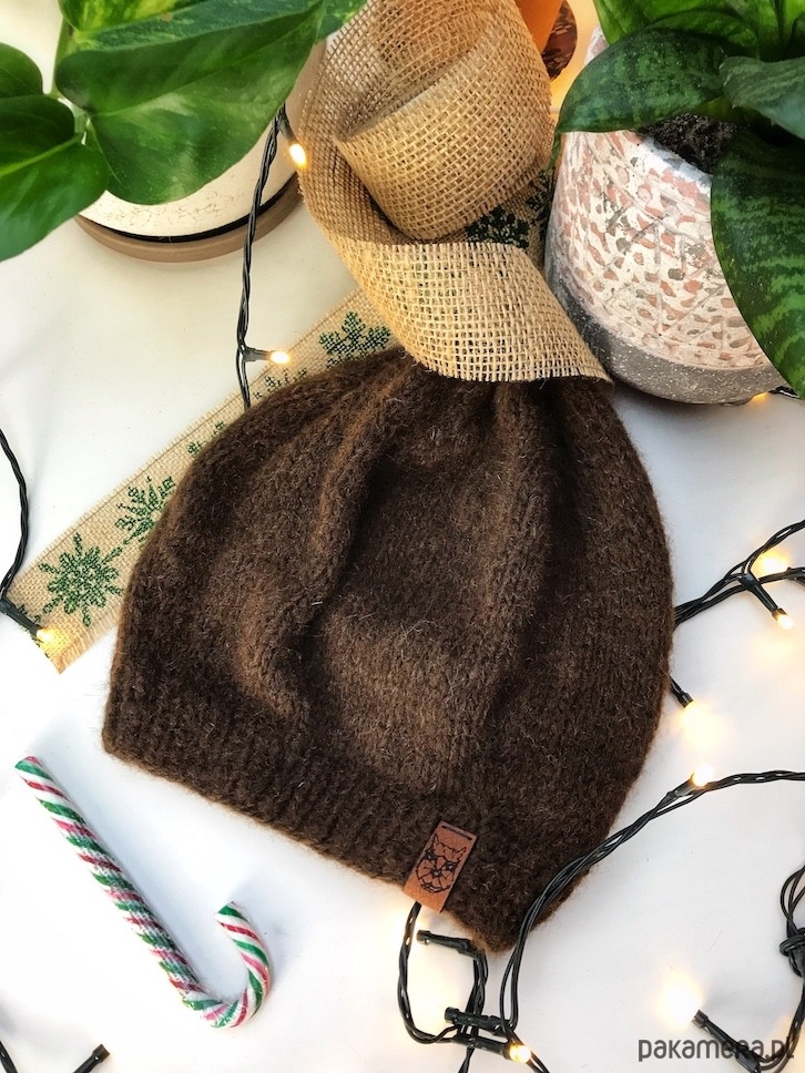 Brązowa czapka z alpaki należy do kolekcji lekkich jak piórko czapek beretowych, które nie zrujnują Twojej fryzury. Wszystkie czapki z tej serii są bardzo twarzowe, gdyż możesz "modelować" je, układając i nosząc na różne sposoby. Zaprojektowałam je nieco na kształt beretu. To oznacza, że przylegają przy twarzy, nie zsuwając się z głowy, a ich pozostała część się rozszerza. Szerszą część możesz uformować z tyłu lub zawadiacko przekręcić na bok.