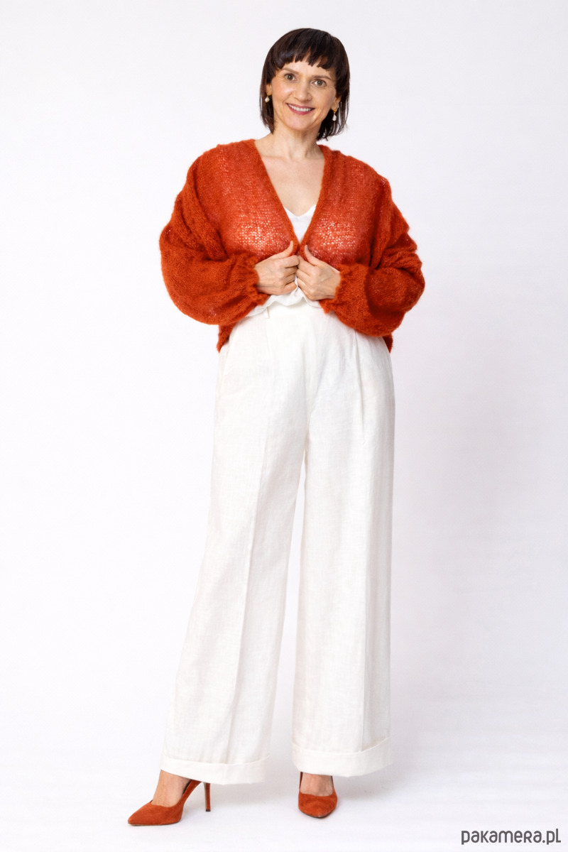Lekki kardigan wełniany damski Klara - Rudy/Rdza