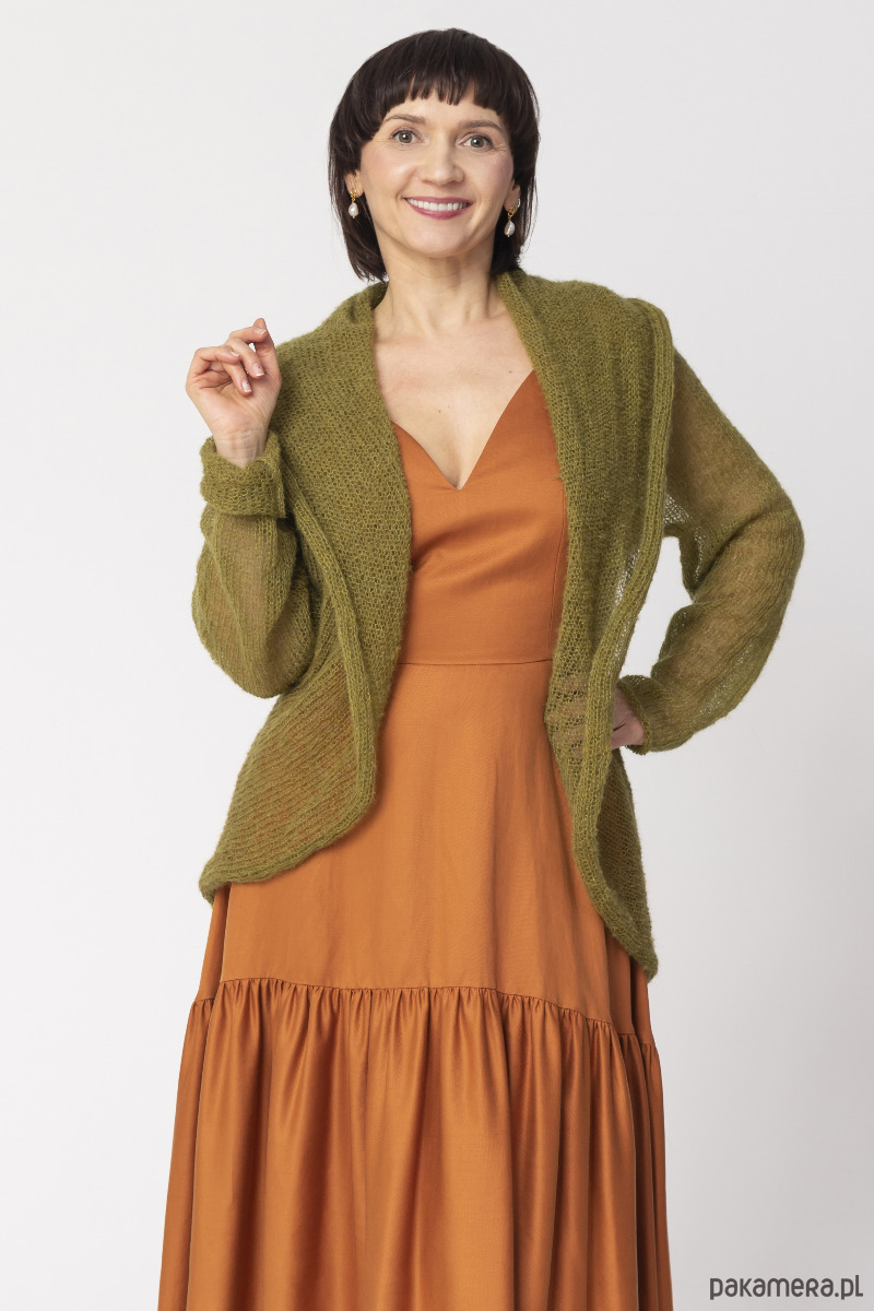 Reneta to nasz flagowy model o unikalnym kroju, który naturalnie dopasowuje się do sylwetki. Ten elegancki sweter damski został zaprojektowany tak, by podkreślić talię bez krępowania ruchów, a szalowy kołnierz zapewnia przyjemne otulenie. Kardigan wełniany jest doskonałą, lżejszą alternatywą dla sztywnej marynarki czy żakietu.