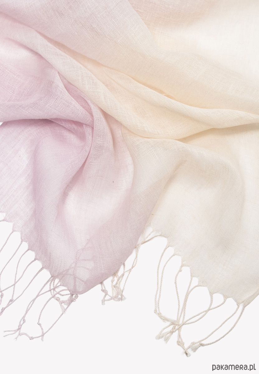 Lekki jak powiew ciepłego wiatru i miękki jak szept – ten lniany szal w romantycznym ombre łączy subtelny róż z kremową bielą. Wykonany ze 100% lnu, urzeka swoją przewiewnością i eteryczną formą, idealną na wiosnę, lato i każdą chwilę, kiedy chcesz wyglądać zjawiskowo bez wysiłku.