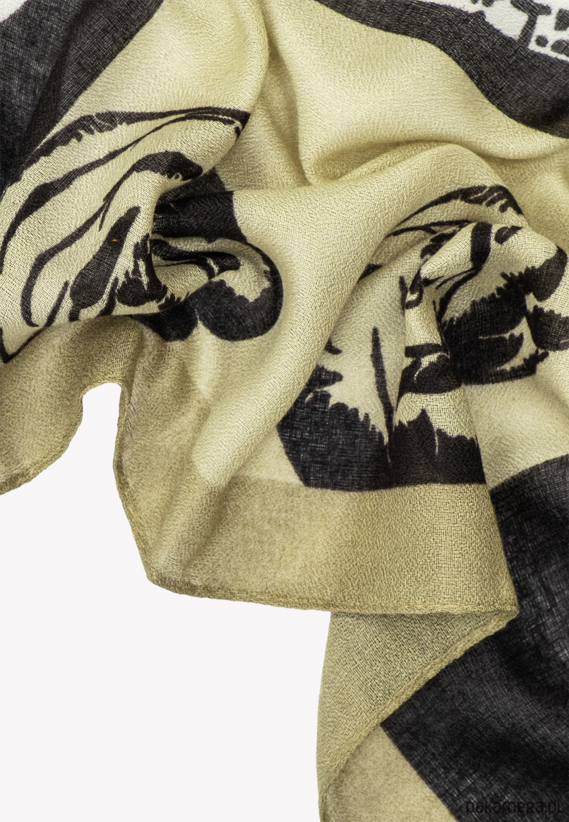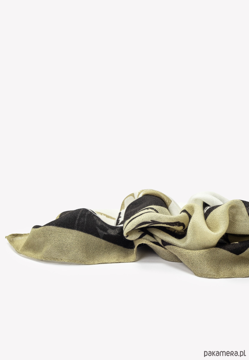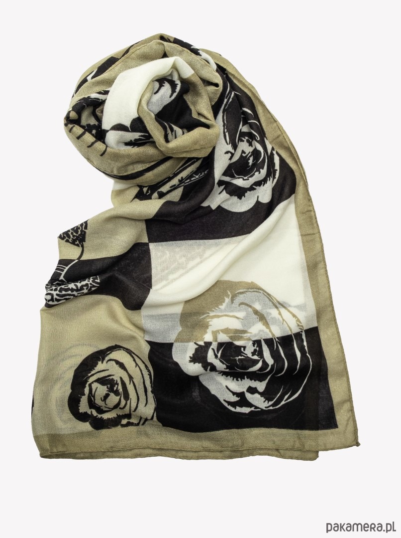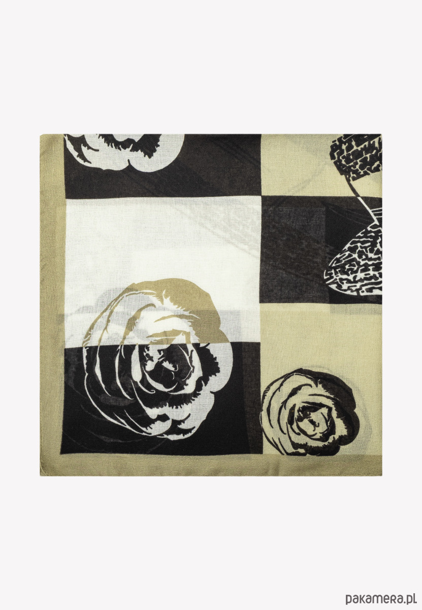 Lekki, delikatny i niezwykle stylowy — ten szal wykonany w 100% z wiskozy to subtelny akcent, który podkreśli każdą stylizację. Geometryczny układ kolorów w tonacjach oliwkowej zieleni, czerni i ecru przełamany motywem kwiatowym nadaje mu artystycznego charakteru.