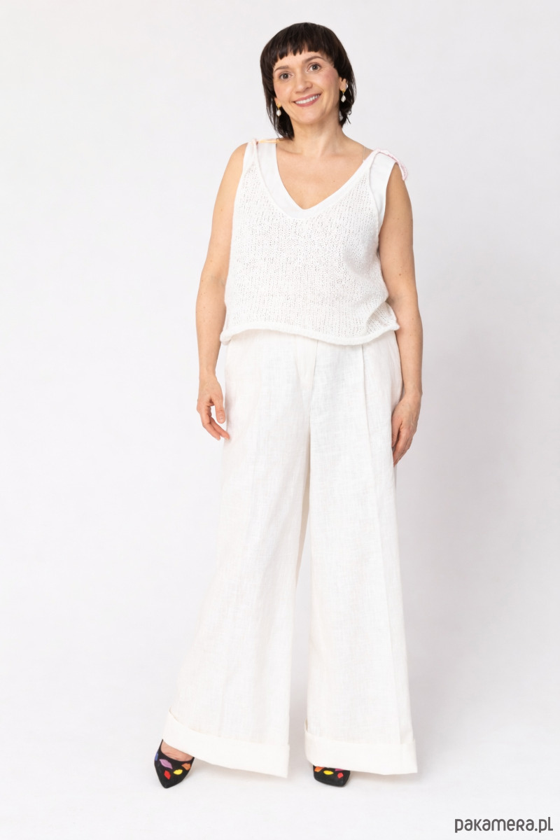 Wełniany top mgiełka to nowa definicja letniej dzianiny. Stworzony z myślą o upalnych dniach, zachwyca ultra-cienkim, oddychającym splotem, który pozwala skórze swobodnie oddychać. Bluzka posiada wiązane ramiączka – nie tylko dodają one całości wyjątkowego uroku, ale pozwalają też na idealne dopasowanie głębokości dekoltu do Twoich potrzeb. Dzięki swojej piórkowej wadze i minimalistycznej formie, top jest niemal niewyczuwalny, stając się Twoją ulubioną „drugą skórą” na lato.