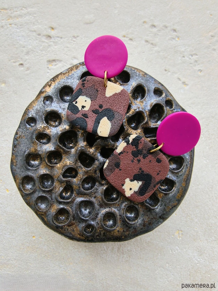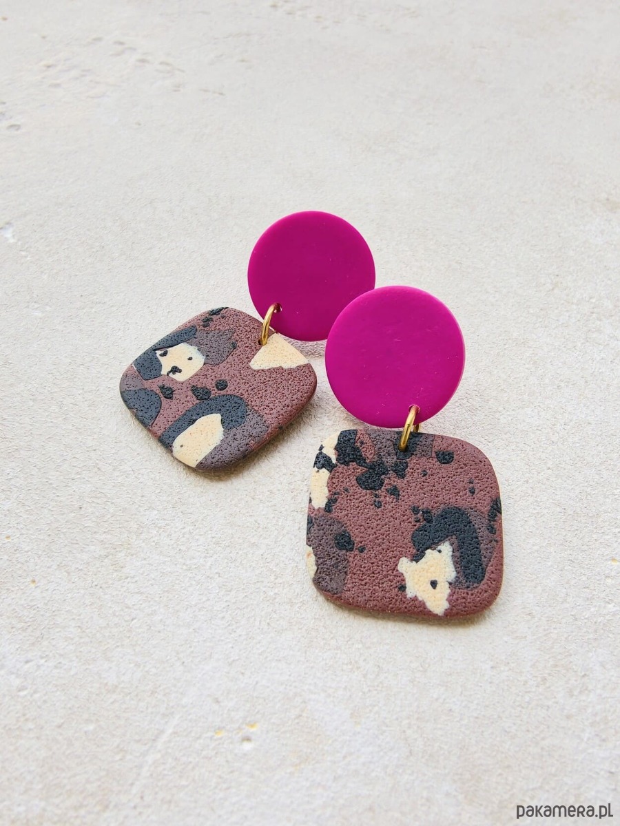 Lekkie geometryczne kolczyki PANTERKI z fuksją