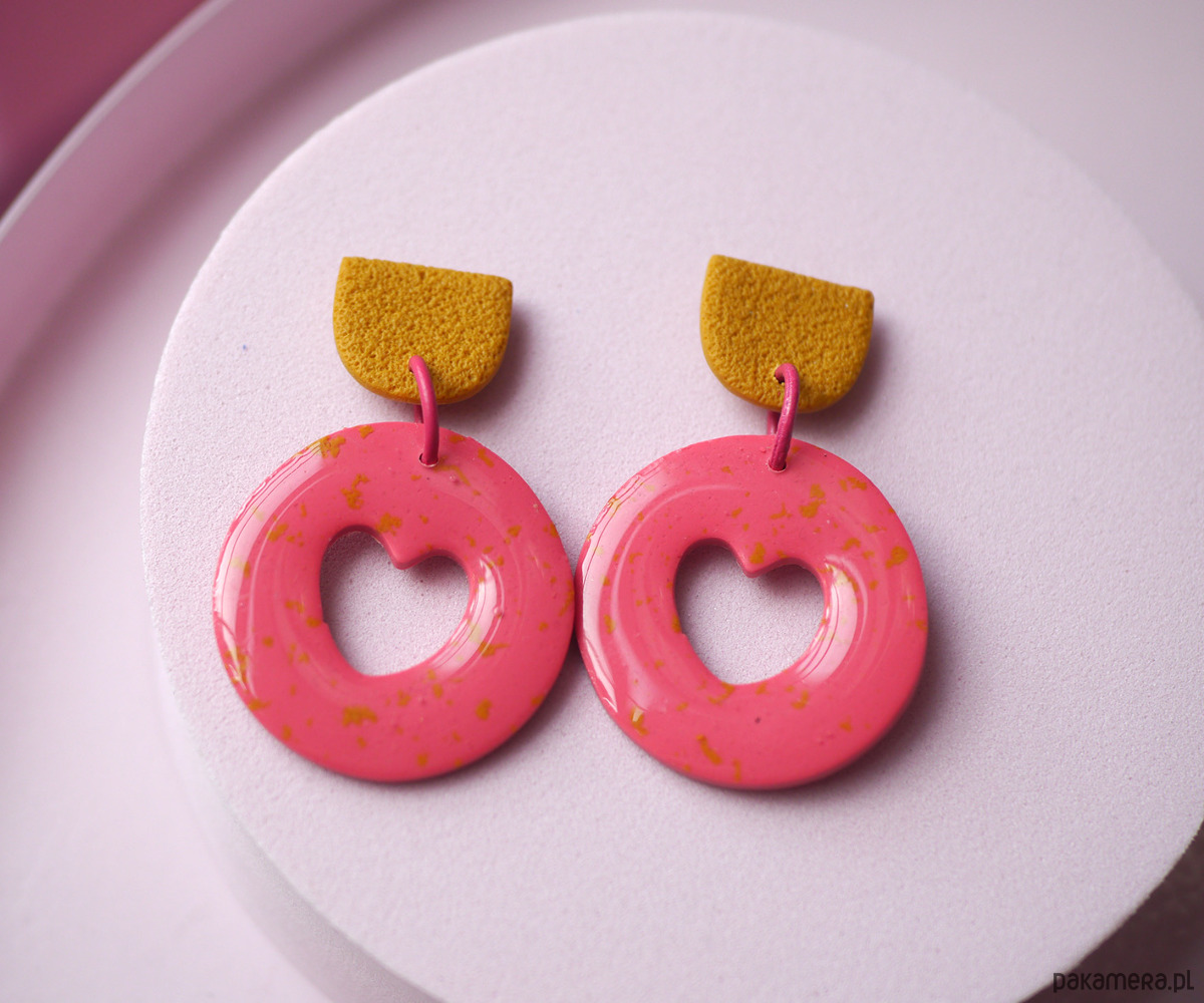 Oryginalne i efektowne kolczyki wykonane ręcznie z glinek polimerowych, pokryte żywicą epoksydową, która nadaje połysku i trwałości.