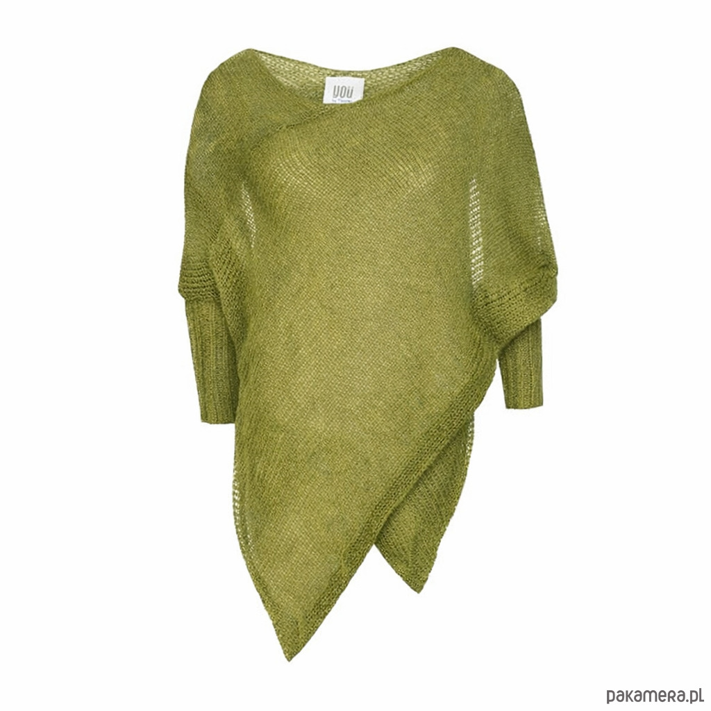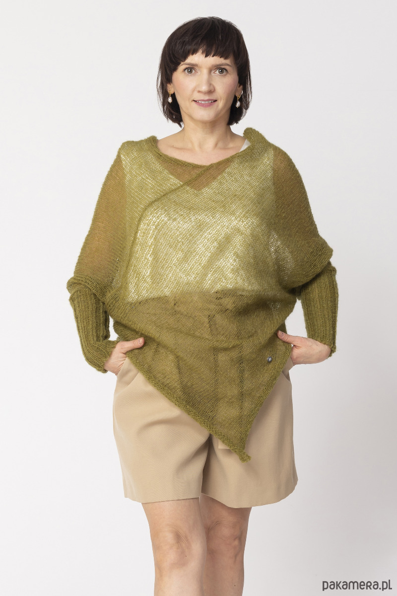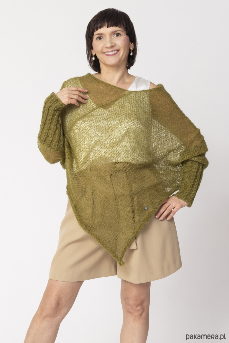 Lekkie ponczo damskie z wełny - Oliwkowe
