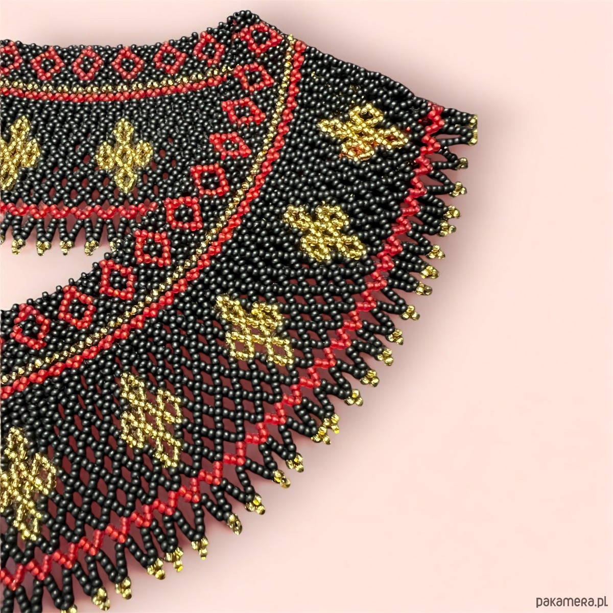 Elegancka łemkowska krzywulka – kolia folkowa wykonana ręcznie z czeskiego koralika najwyższej jakości.