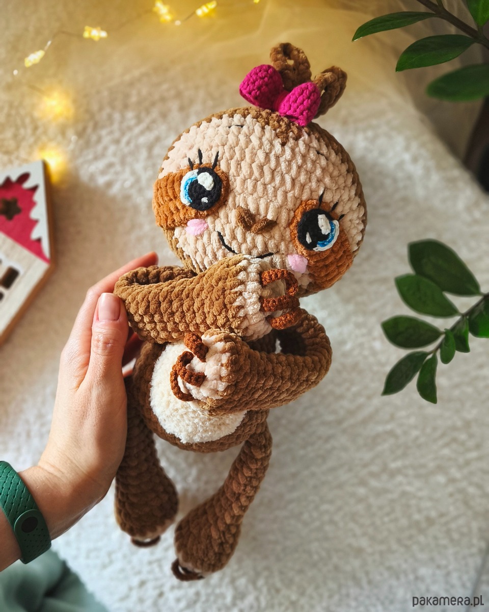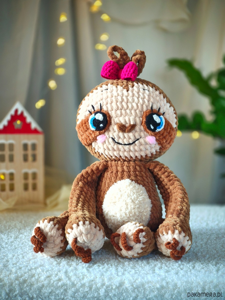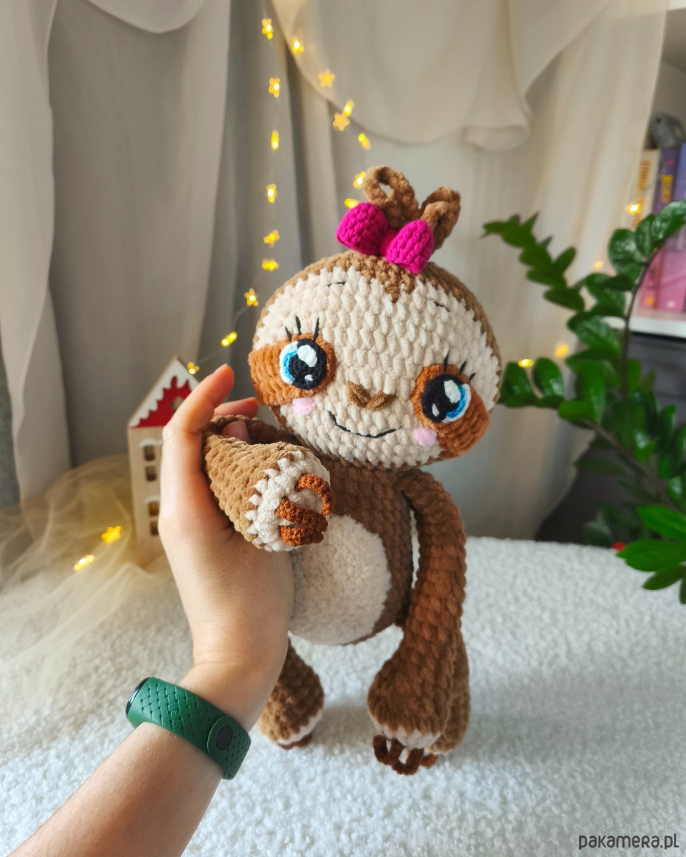 Urocza pluszowa dziewczynka leniwiec wykonana na szydełku to idealny prezent dla dziecka lub dorosłego człowieka na wiele różnych świąt!