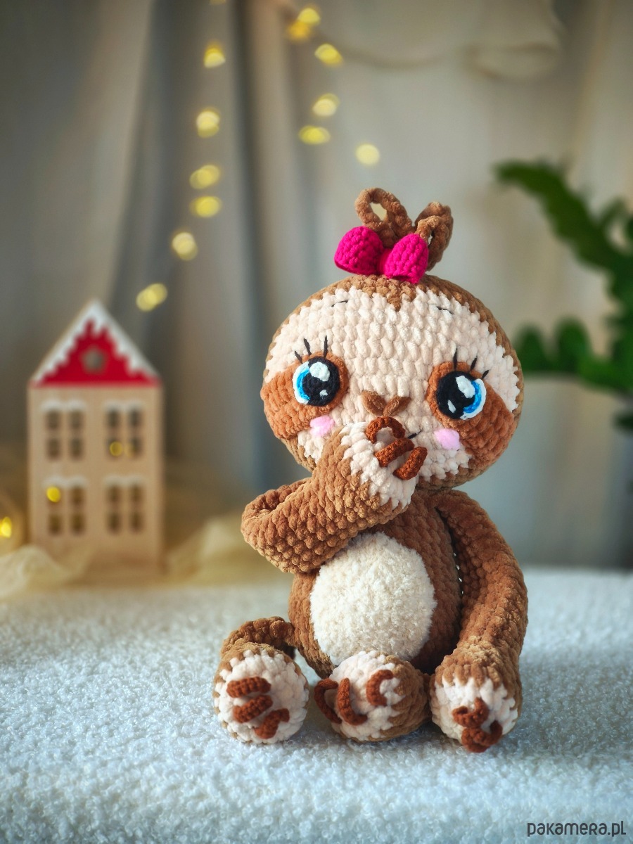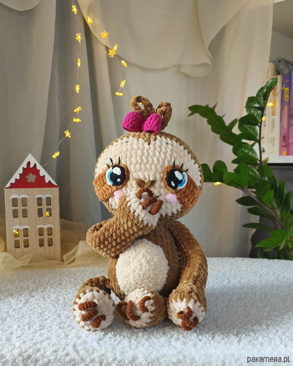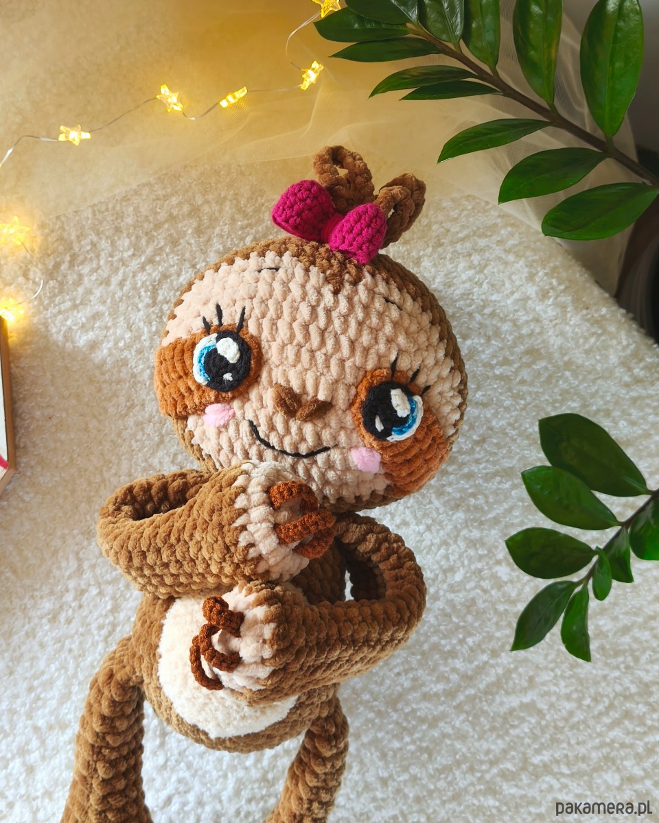 Urocza pluszowa dziewczynka leniwiec wykonana na szydełku to idealny prezent dla dziecka lub dorosłego człowieka na wiele różnych świąt!