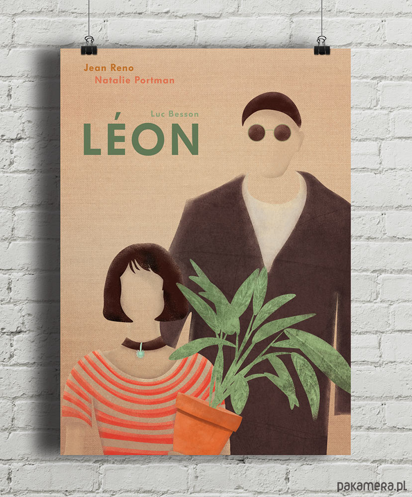 Plakat inspirowany filmem Leon zawodowiec, reż. Luc Besson. Opowieść o przyjaźni płatnego mordercy o gołębim sercu i dziewczynki pragnącej pomścić zabójstwo swojego braciszka na stałe weszła do kanonu kina. Grafika ukazuje dwie główne postacie wspaniale odtwarzane przez Jeana Reno - dla którego rola Leona była stworzona i Natalie Portman debiutującą na ekranie w roli Matyldy.