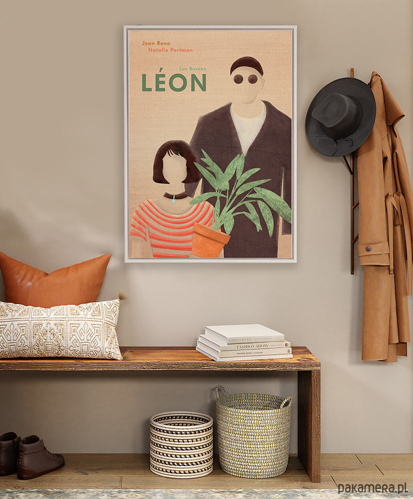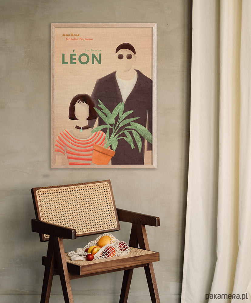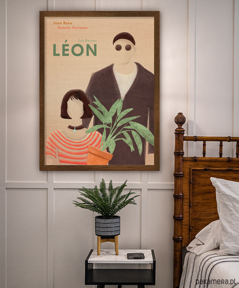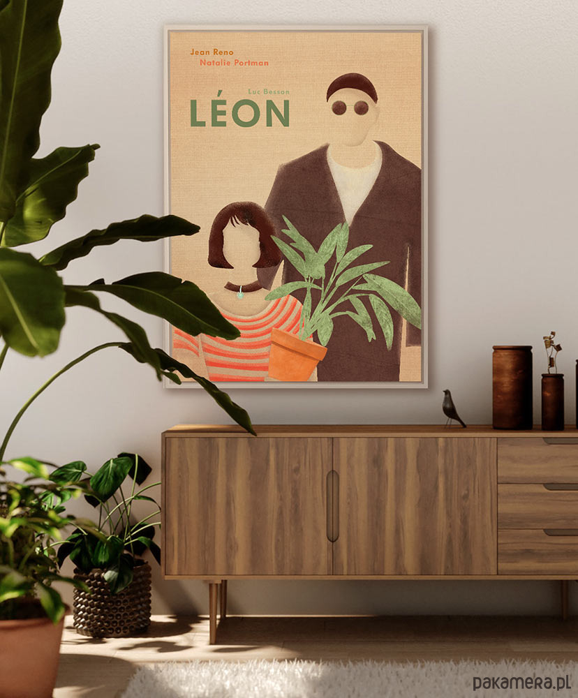 Plakat inspirowany filmem Leon zawodowiec, reż. Luc Besson. Opowieść o przyjaźni płatnego mordercy o gołębim sercu i dziewczynki pragnącej pomścić zabójstwo swojego braciszka na stałe weszła do kanonu kina. Grafika ukazuje dwie główne postacie wspaniale odtwarzane przez Jeana Reno - dla którego rola Leona była stworzona i Natalie Portman debiutującą na ekranie w roli Matyldy.