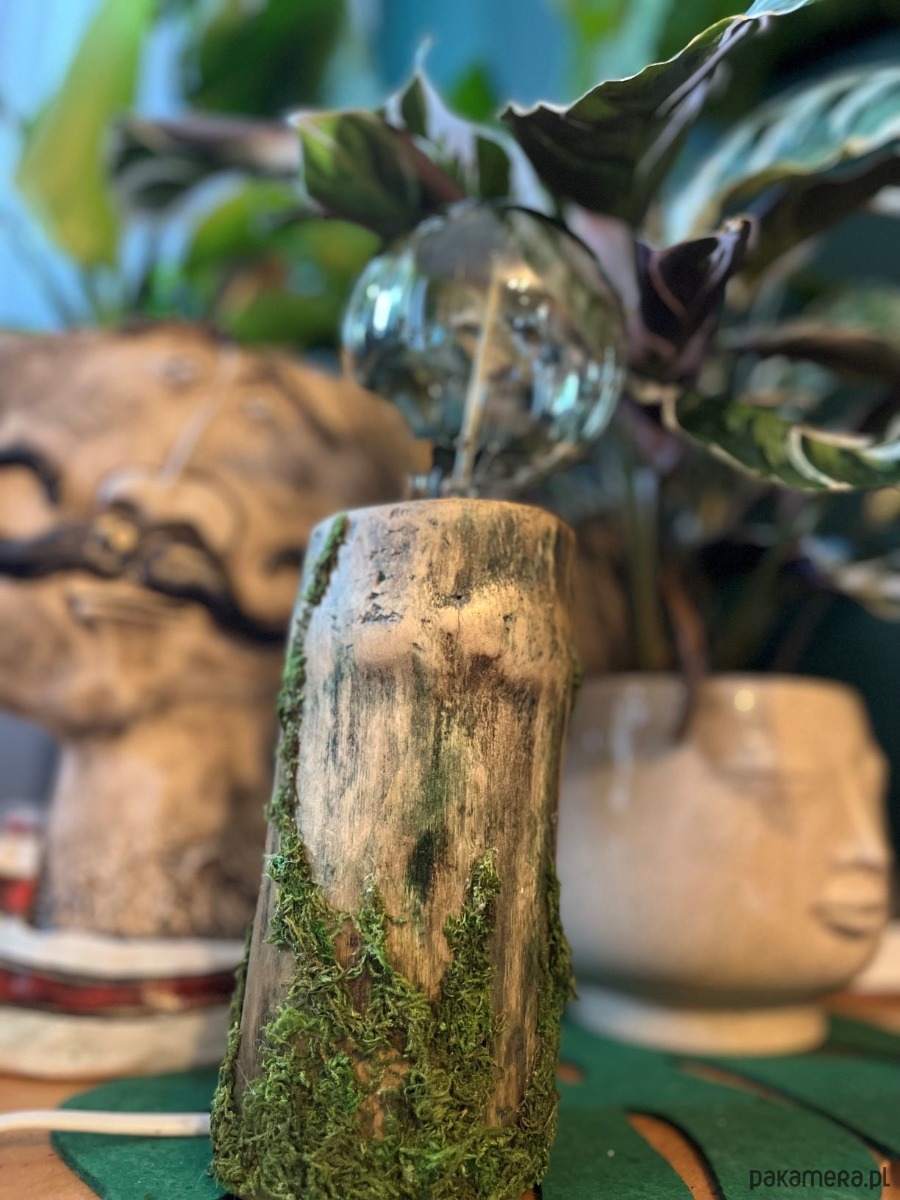 Główny element to miniaturowy pniak, który został delikatnie pomalowany na zielono i złoto oraz zabezpieczony woskiem. Oklejony mchem oddaje leśny krajobraz, tworząc wyjątkowy nastój w Twoim pomieszczeniu.🌄