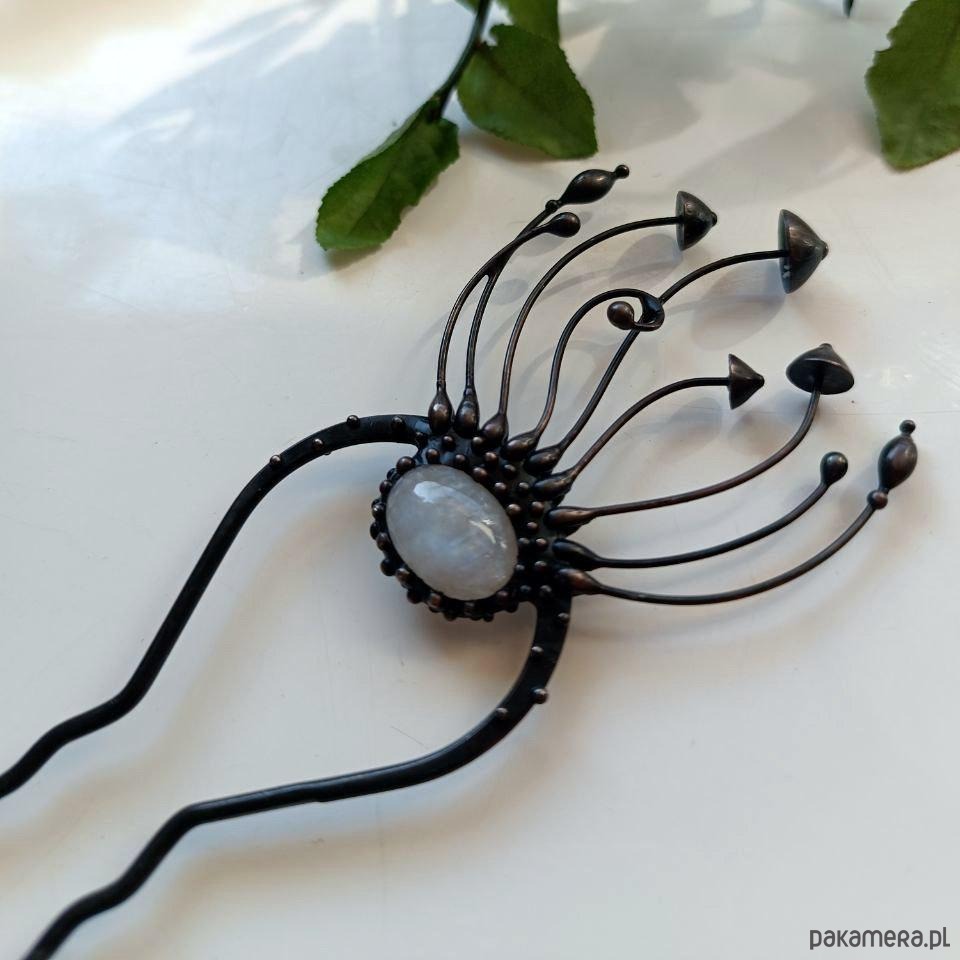 Leśna spinka do włosów w kształcie grzybów z kamieniem księżycowym