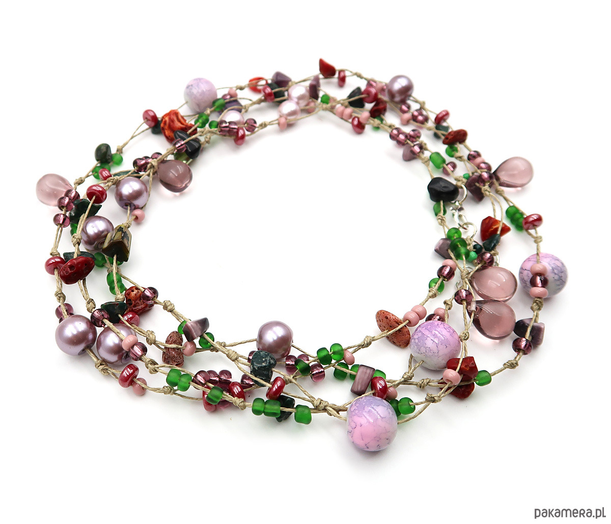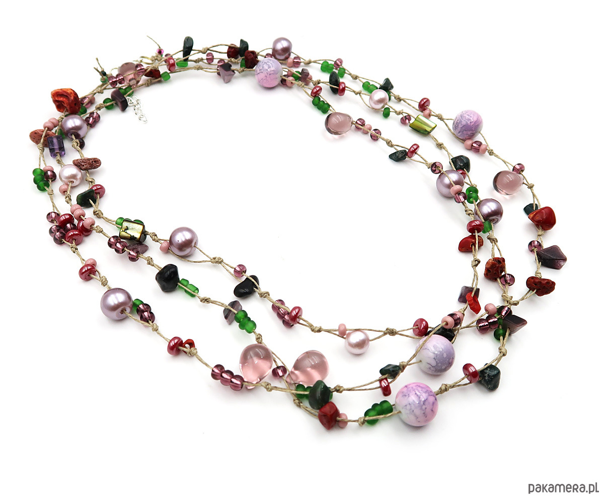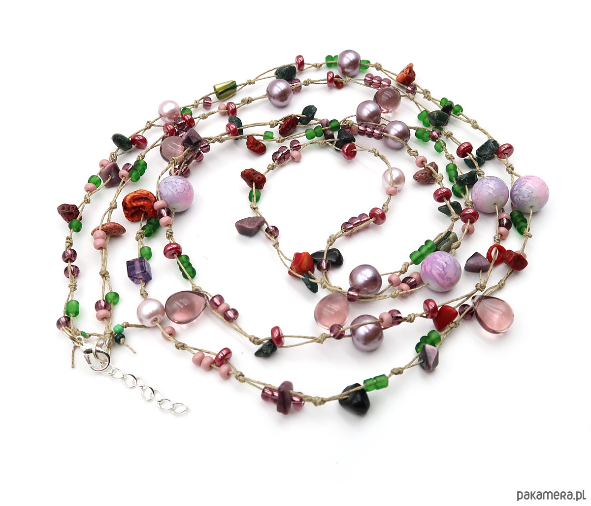 W splocie znalazły się szklane elementy renomowanej czeskiej firmy Jablonex, a także bryłki koralowca, tygrysiego oka i agatu, które tworzą barwną, energetyczną kompozycję inspirowaną bogactwem leśnych owoców.