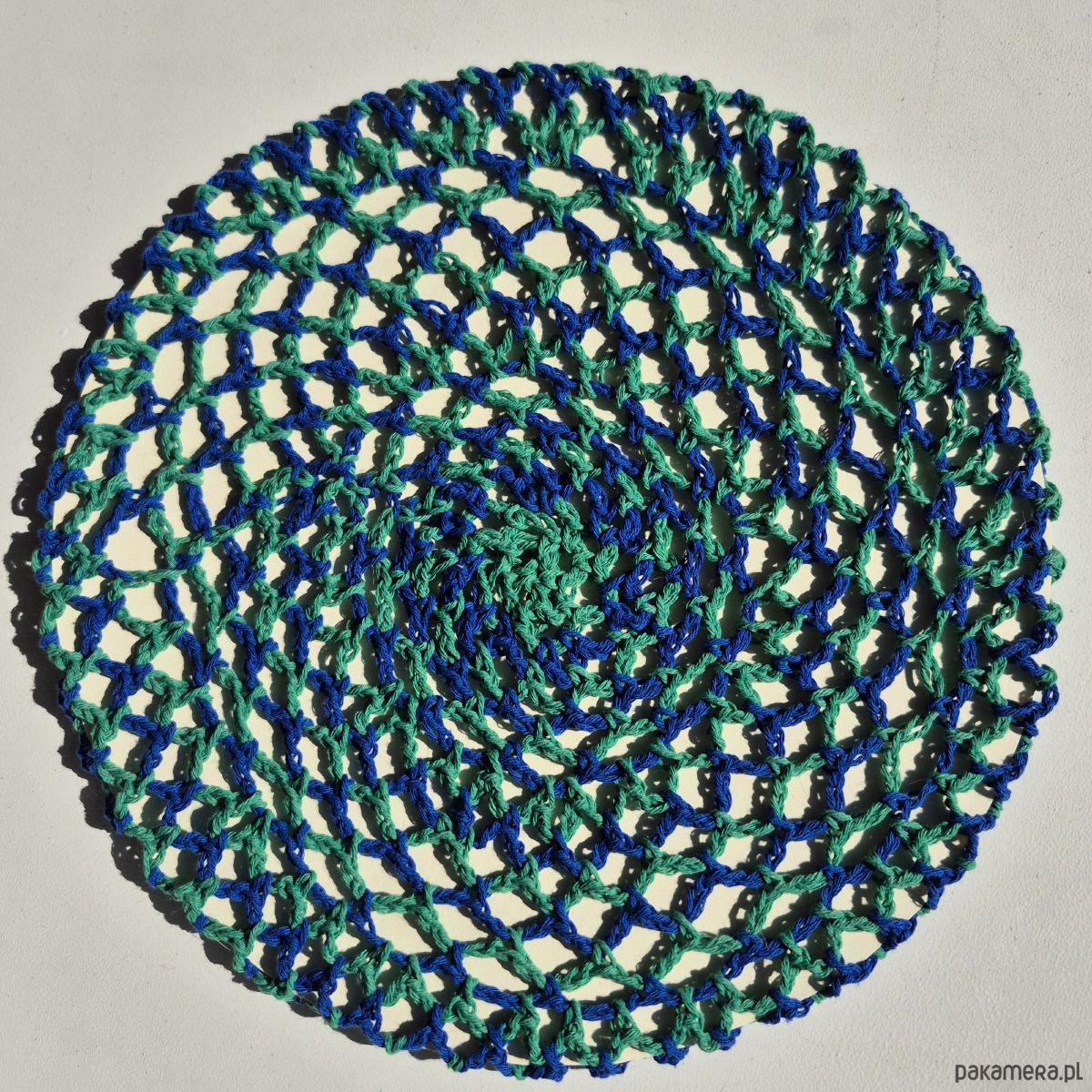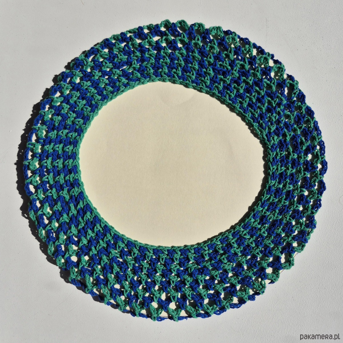 Unikatowy, letni beret zrobiony ręcznie na szydełku z włóczek bawełnianych w kolorze zielonym i atramentowym kolorze. Beret ażurowy , przewiewny. Miękka, plastyczna forma dobrze układająca się na głowie. Doskonały dodatek do letniej garderoby. Beret pasuje do letnich ubrań casual, fashion.