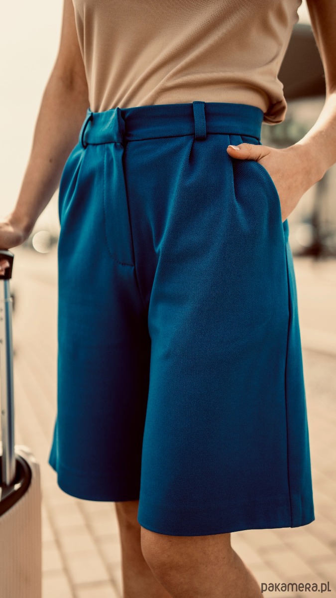 Szorty - wysoka talia, szersze nogawki, po bokach kieszenie, długość szortów to 55cm. Na życzenie darmowo skracamy do preferowanej długości (w tym celu daj nam znać w wiadomości w podsumowaniu koszyka)