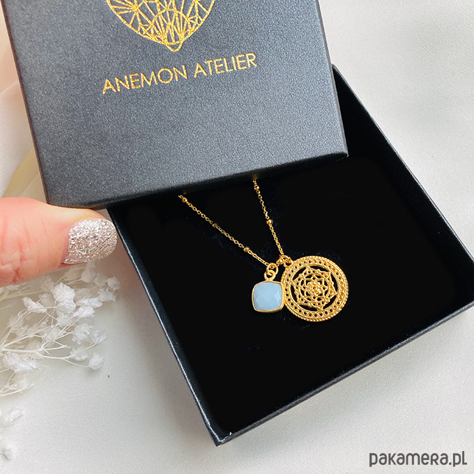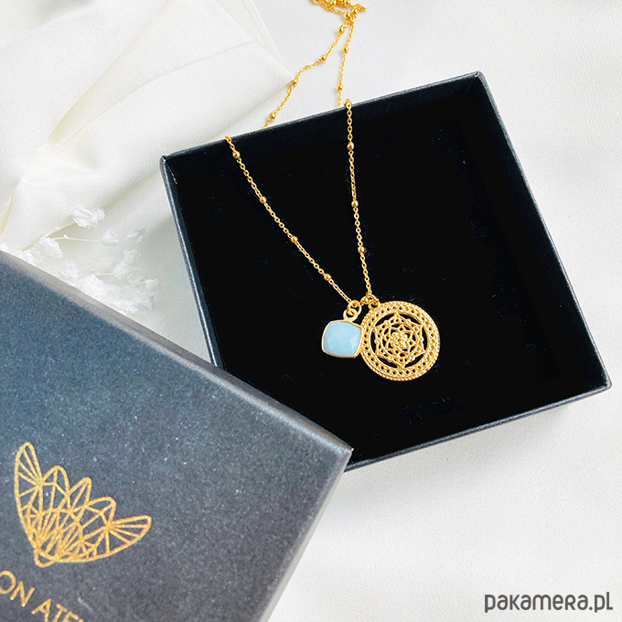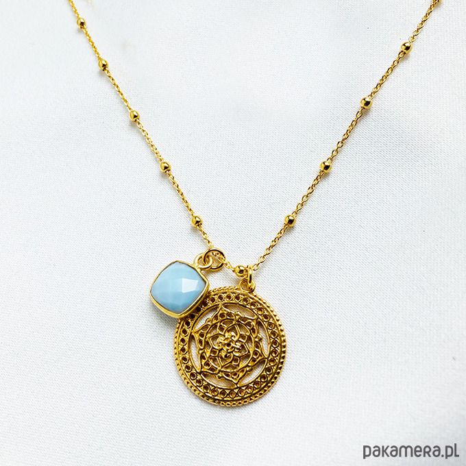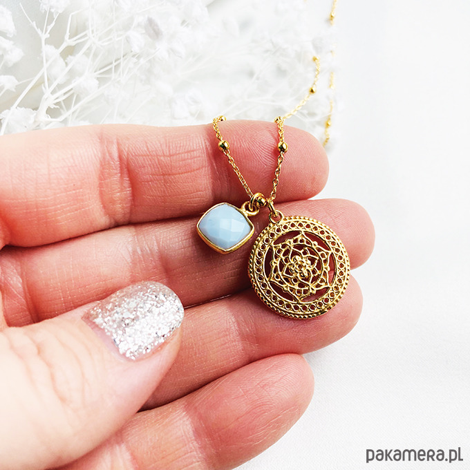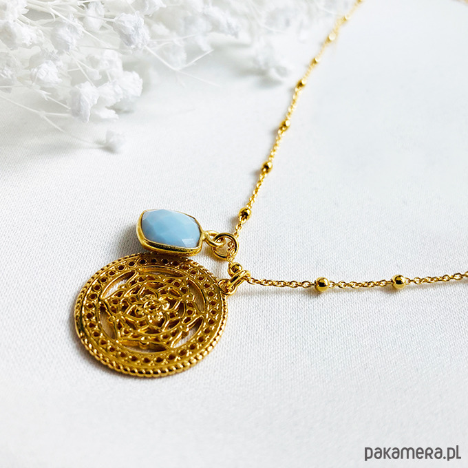 LETNI WIECZÓR- Niebieski NASZYJNIK OPAL z zawieszką Rozetą