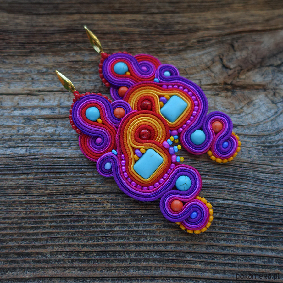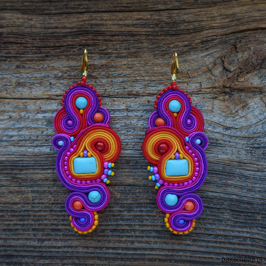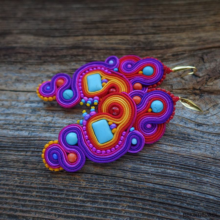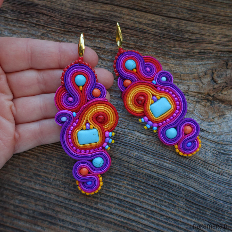 Duże, kolorowe i absolutnie hipnotyzujące kolczyki w technice soutache.