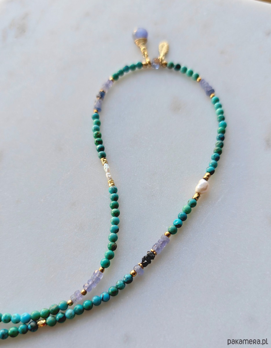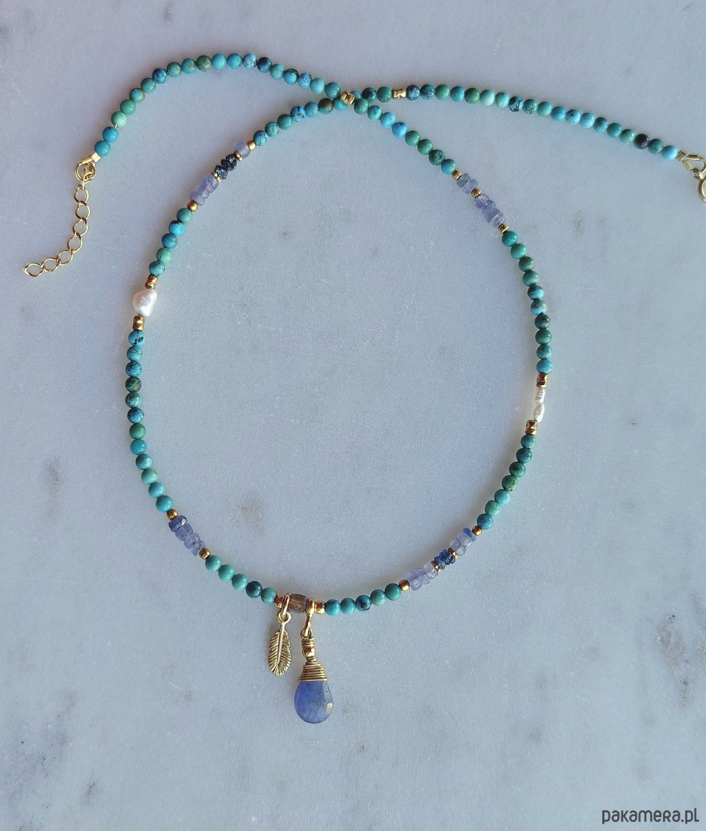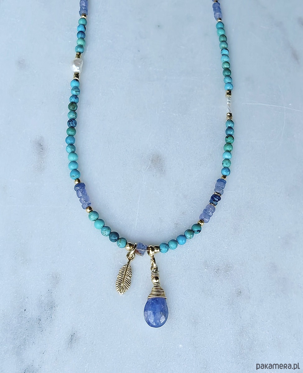 Letnie lśnienia z tanzanitem i turkusem - naszyjnik