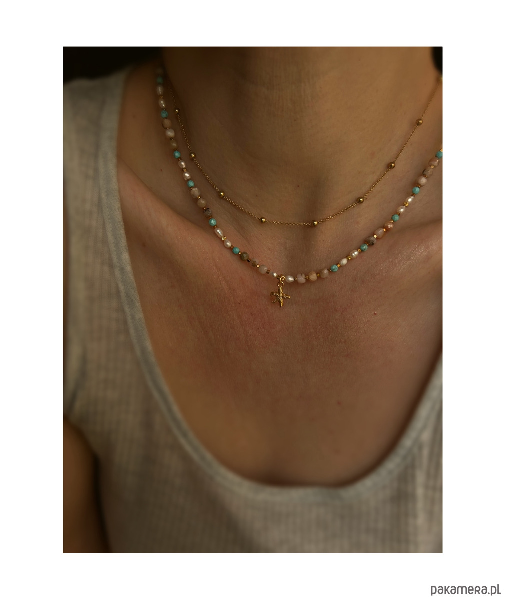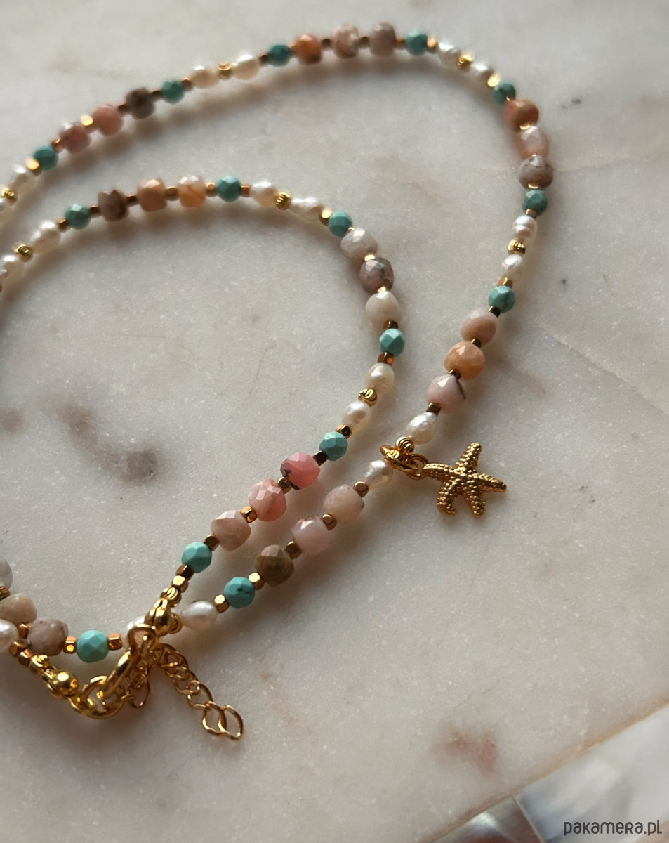 Piękno kamieni zostało subtelnie podkreślone złotymi hematytami, pozłacane dodatki. Naszyjnik - talizman szczęścia i życiowego optymizmu.