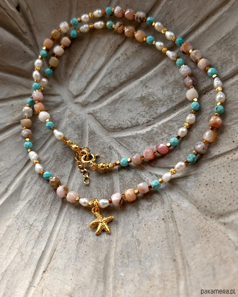 Naszyjnik z Opalem, perłami i Turkusem.