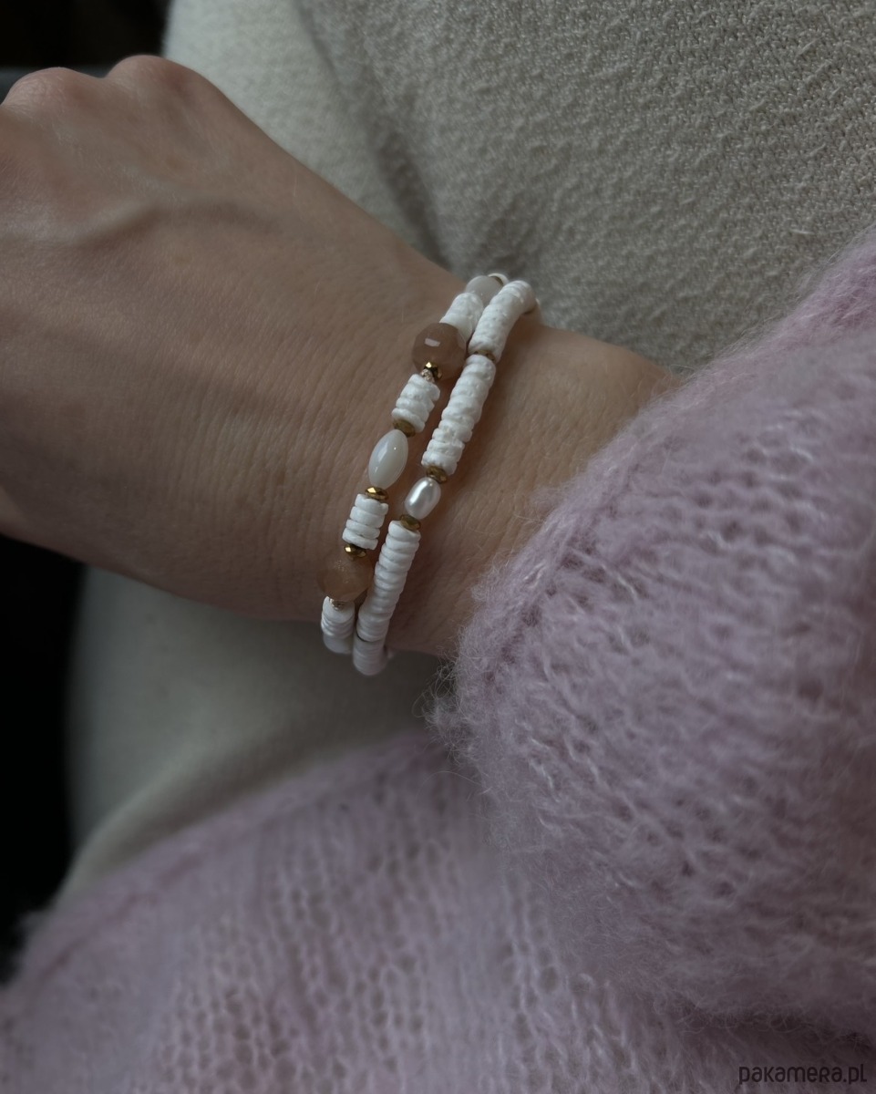 Letnie wibracje - bransoletka z Muszlą i kamieniem słonecznym