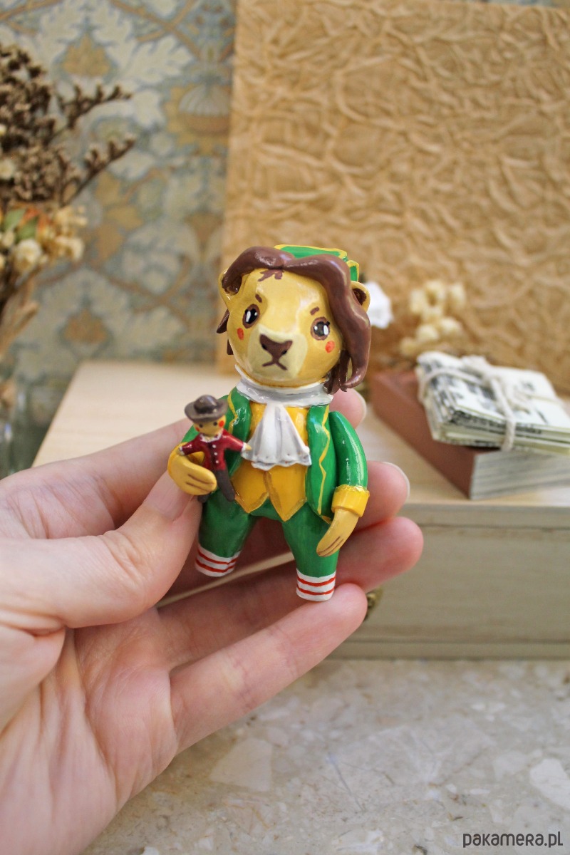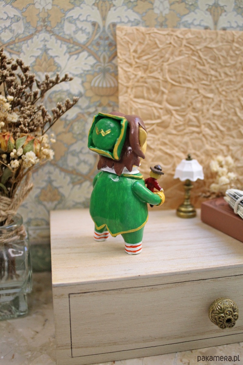 • Ta figurka została wykonana ręcznie z gliny polimerowej wysokiej jakości. Każdy detal powstał z miłością i dbałością o najmniejsze szczegóły, co nadaje jej wyjątkowy charakter. Figurkę pomalowano ręcznie farbami akrylowymi i pokryto lakierem ochronnym.