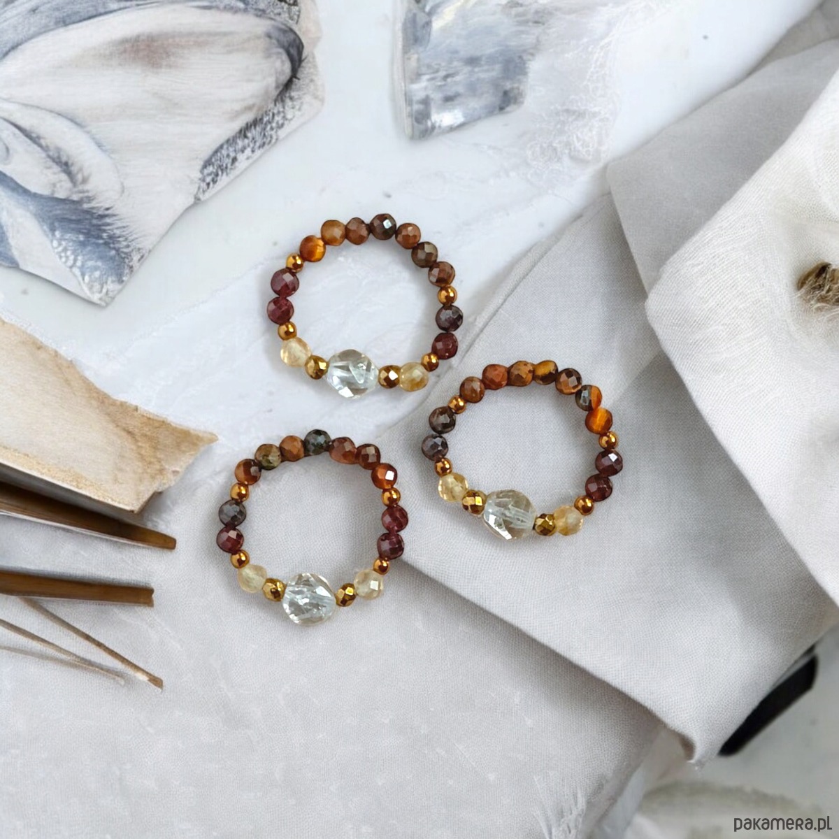 - Rodzaj kamienia: tygrysie oko, kryształ górski, hematyt, granat, cytryn