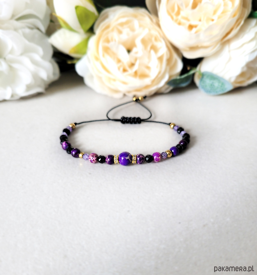 Bransoletka zrobiona z kamieni naturalnych: Turmalinu, Jaspisu Cesarskiego, Spinelu, Hematytu i Cyrkonii głównie przeznaczona dla zodiakalnego Lwa.