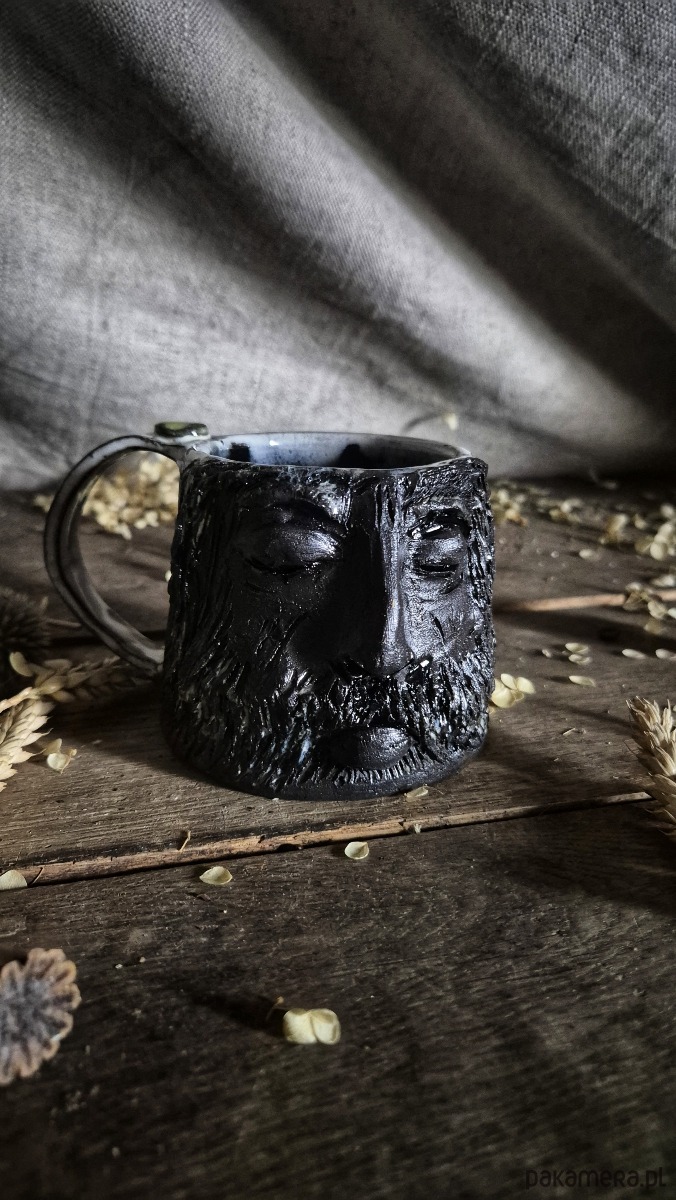 Ręcznie rzeźbiony, unikatowy kubek inspirowany Duchem Karkonoszy – Liczyrzepą, zwanym także Tocożnym. Każdy egzemplarz powstaje indywidualnie, dzięki czemu nie ma dwóch identycznych sztuk. Kubek został wykonany z wysokiej jakości gliny, a jego powierzchnię zdobi plastyczna twarz leśnego ducha – surowa, pełna faktur i głębokich detali.