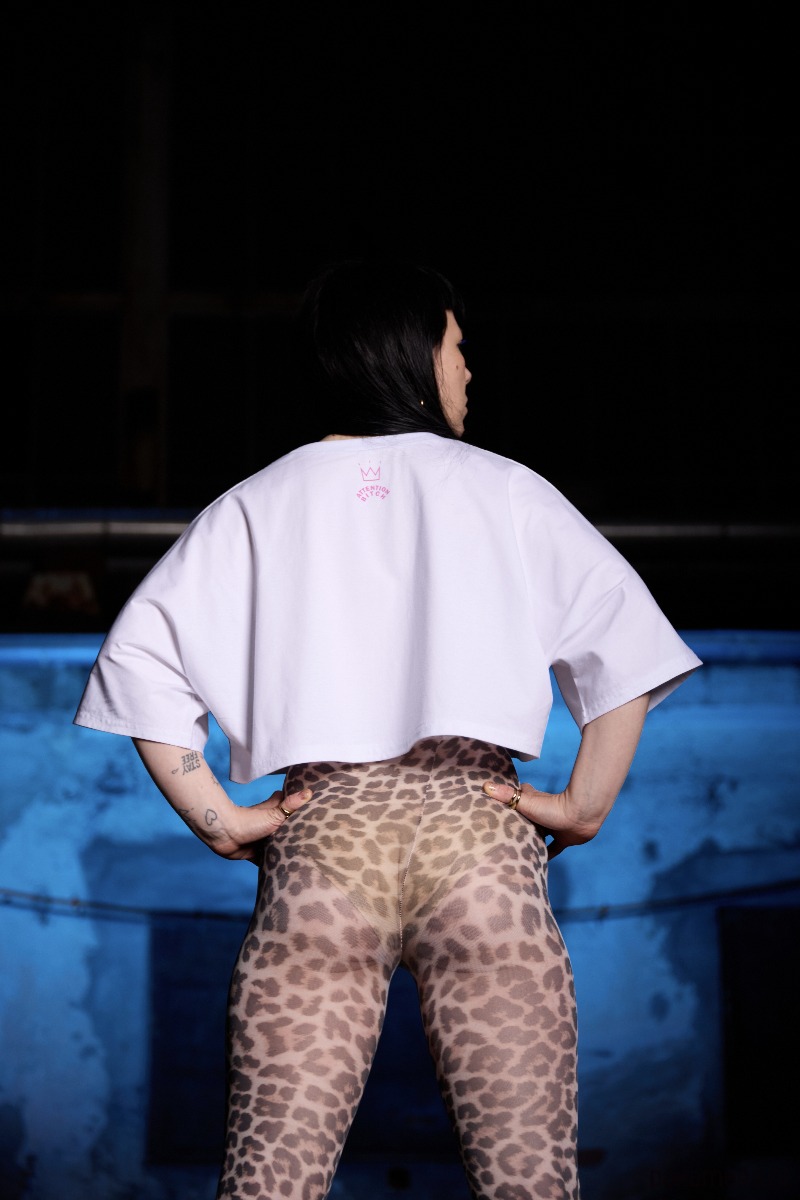 Z tyłu niewielkie logo ATTENTION BITCH, a na lewym rękawku drobny akcent w postaci korony.