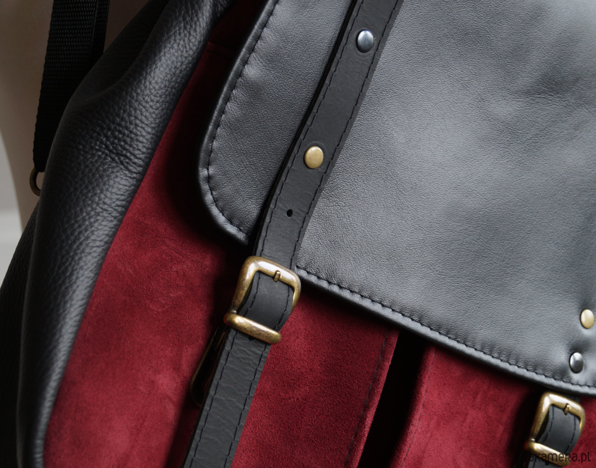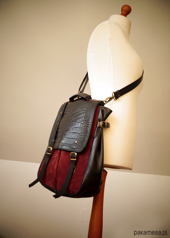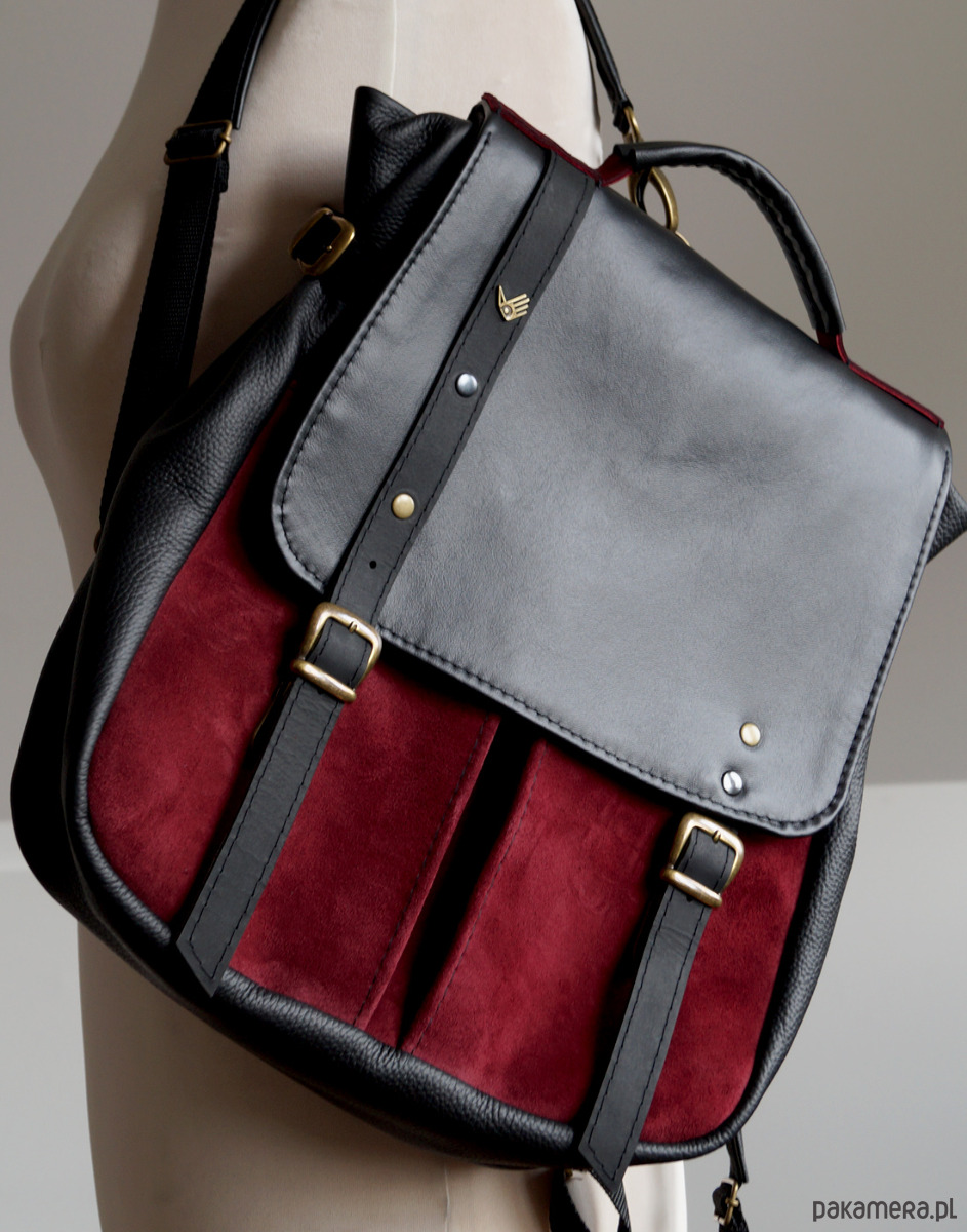 LILITH CHIMERA skóra naturalna Plecak/Torba Czerwone Wino Czerń