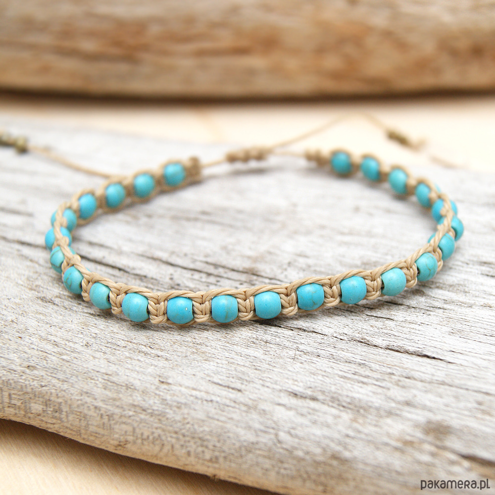 Bransoletka wykonana z wysokiej jakości sznurka który nie niszczy się przy nawet częstym kontakcie z wodą :) Kamień howlit w kolorze turkusowym.