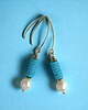 Kolczyki zostały wykonane z krążków turkusowej, porowatej lawy (ok.6mm), przepięknych , naturalnych pereł (ok. 10mm) przekładek ze złotego hematytu.