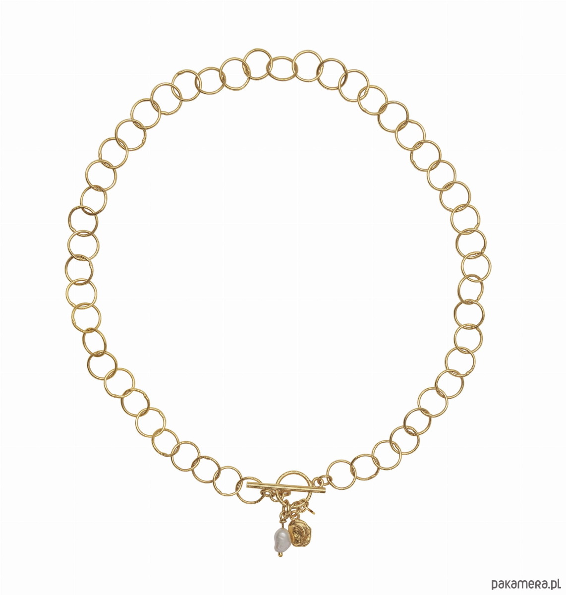 Naszyjnik ma 3 zawieszki - perełka srebrna złocona, maleńki medalik, wyjątkowa perełka hodowlana