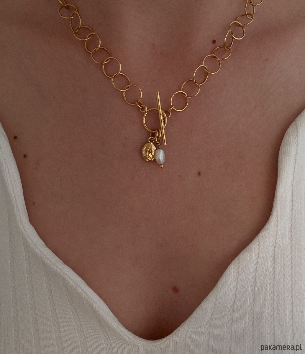Naszyjnik ma 3 zawieszki - perełka srebrna złocona, maleńki medalik, wyjątkowa perełka hodowlana