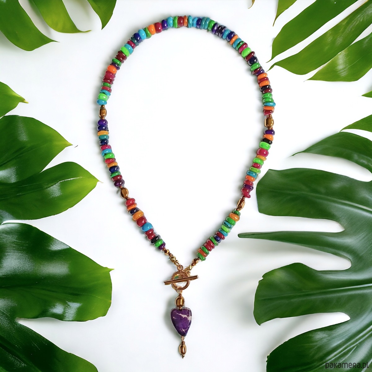 LIMITOWANY NASZYJNIK z sercem : kolorowa masa perłowa, hematyt, jaspis cesarski