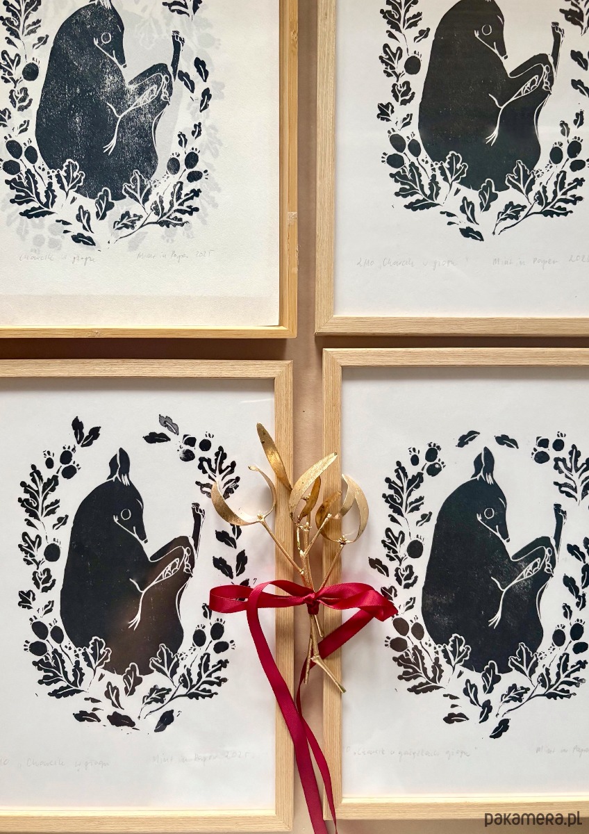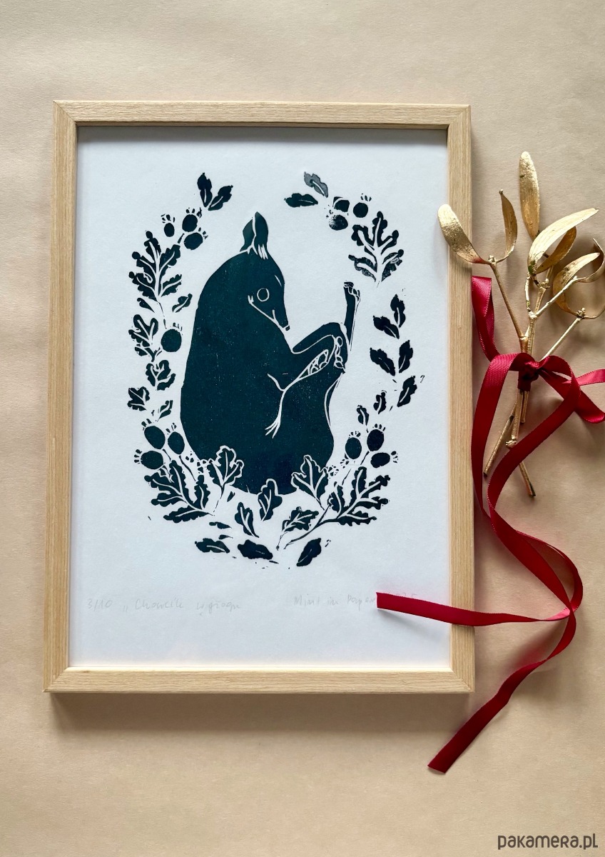 Każdy linoryt jest unikatowy i delikatnie różni się od pozostałych, ponieważ wykonany jest siłą docisku bez użycia prasy.