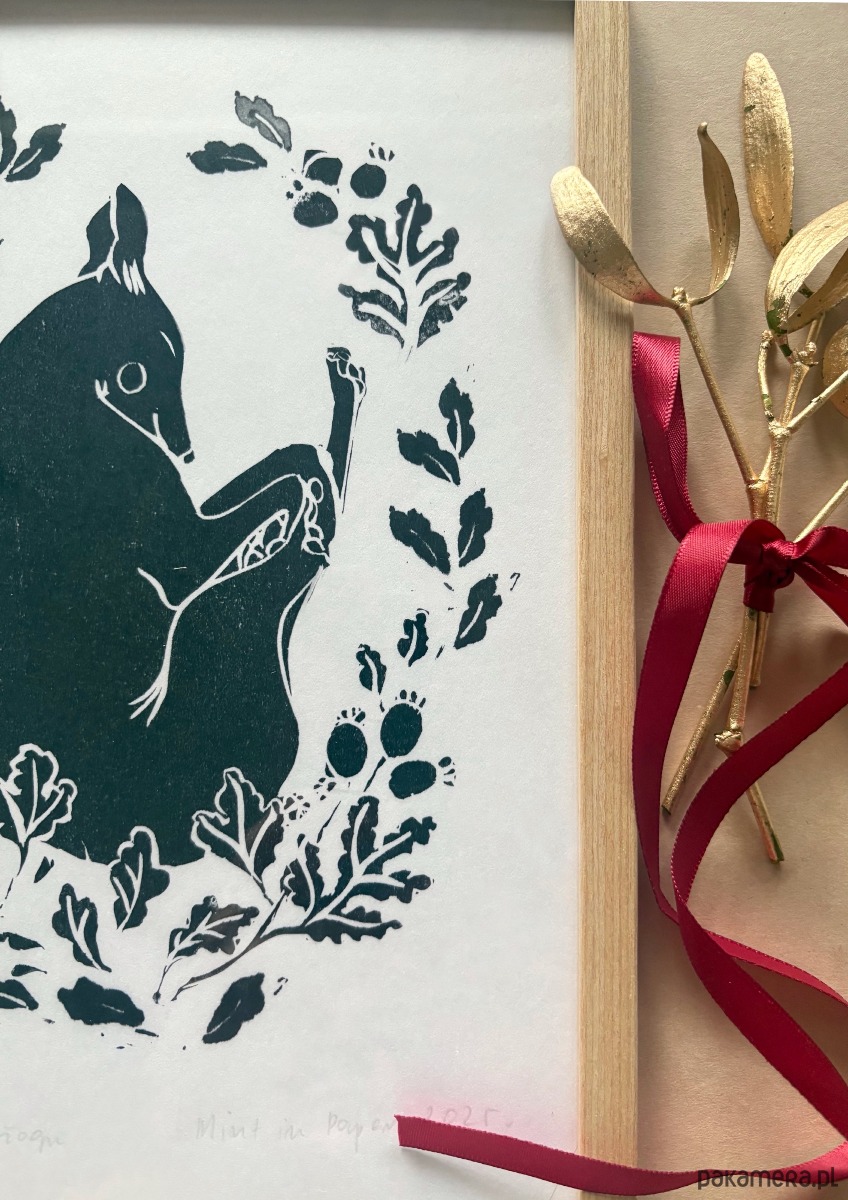 Linoryt przedstawiający charcika będzie idealnym prezentem dla miłośników psów.