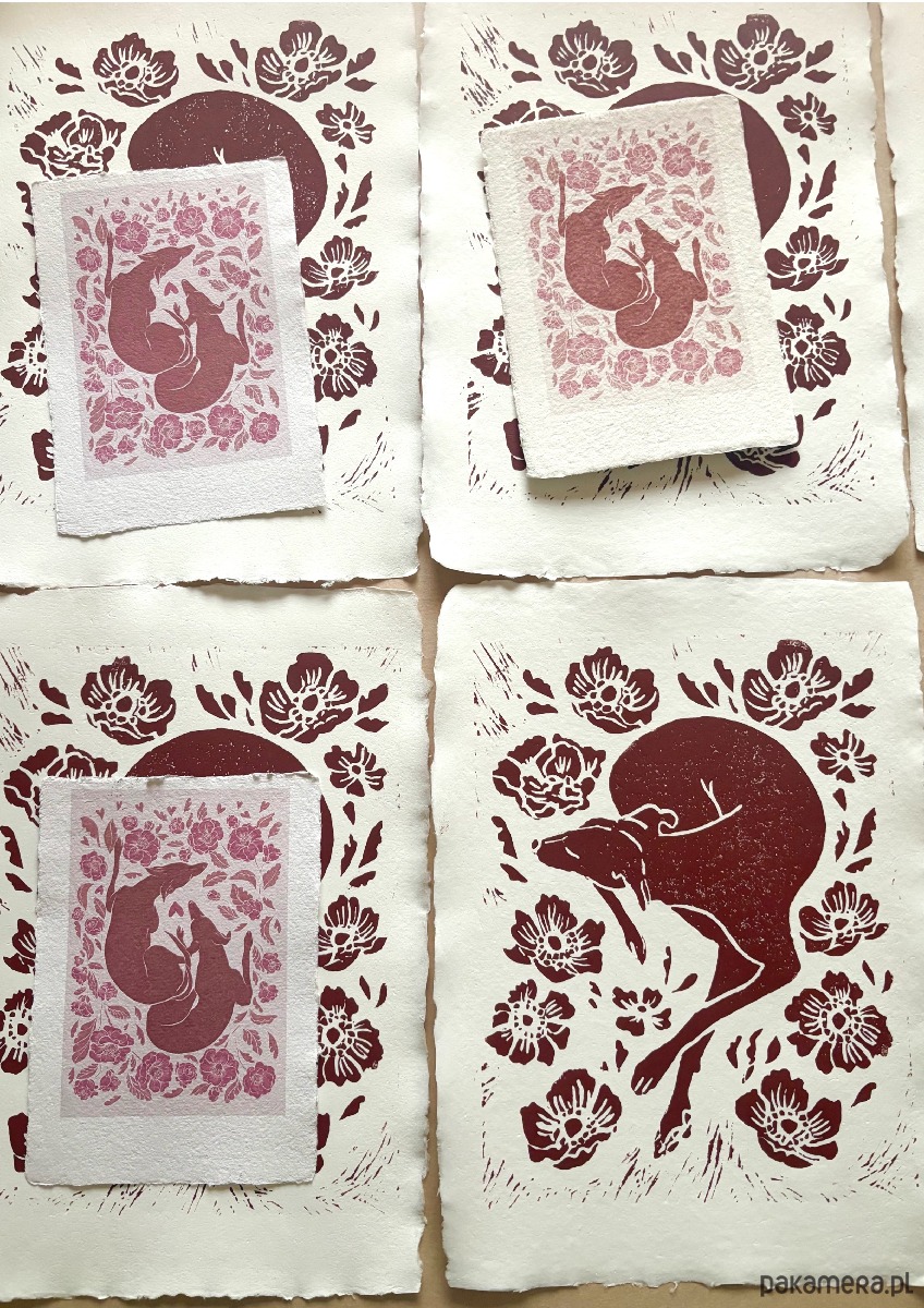 Każdy linoryt jest unikatowy i delikatnie różni się od pozostałych, ponieważ wykonany jest siłą docisku bez użycia prasy.