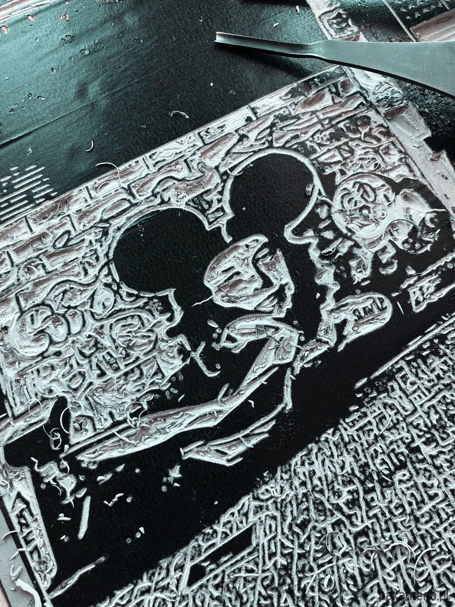 Ponieważ jest to praca od początku do końca wykonana ręcznie, każda odbitka może się nieznacznie różnić od tej prezentowanej na zdjęciu. Spowodowane jest to m.in. ilością farby nałożonej na grafikę, jej rozprowadzeniem oraz siłą pracy własnych rąk. Również ustawienie oraz właściwości monitora mogą wpływać na odbiór pracy i powodować różnicę z oryginałem.