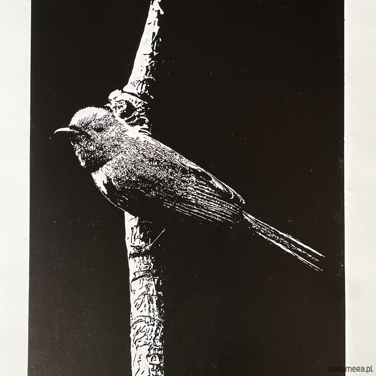 Linoryt "Little bird" - odbitka 40/60 cm, papier 50/70 cm