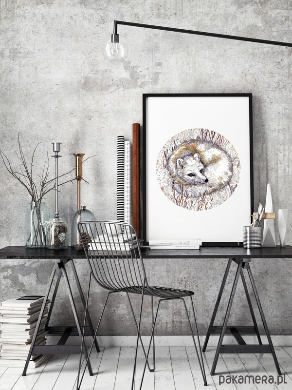 Lis polarny- wydruk autorskiej ilustracji inspirowanej światem rodzimej fauny oraz estetyką vintage