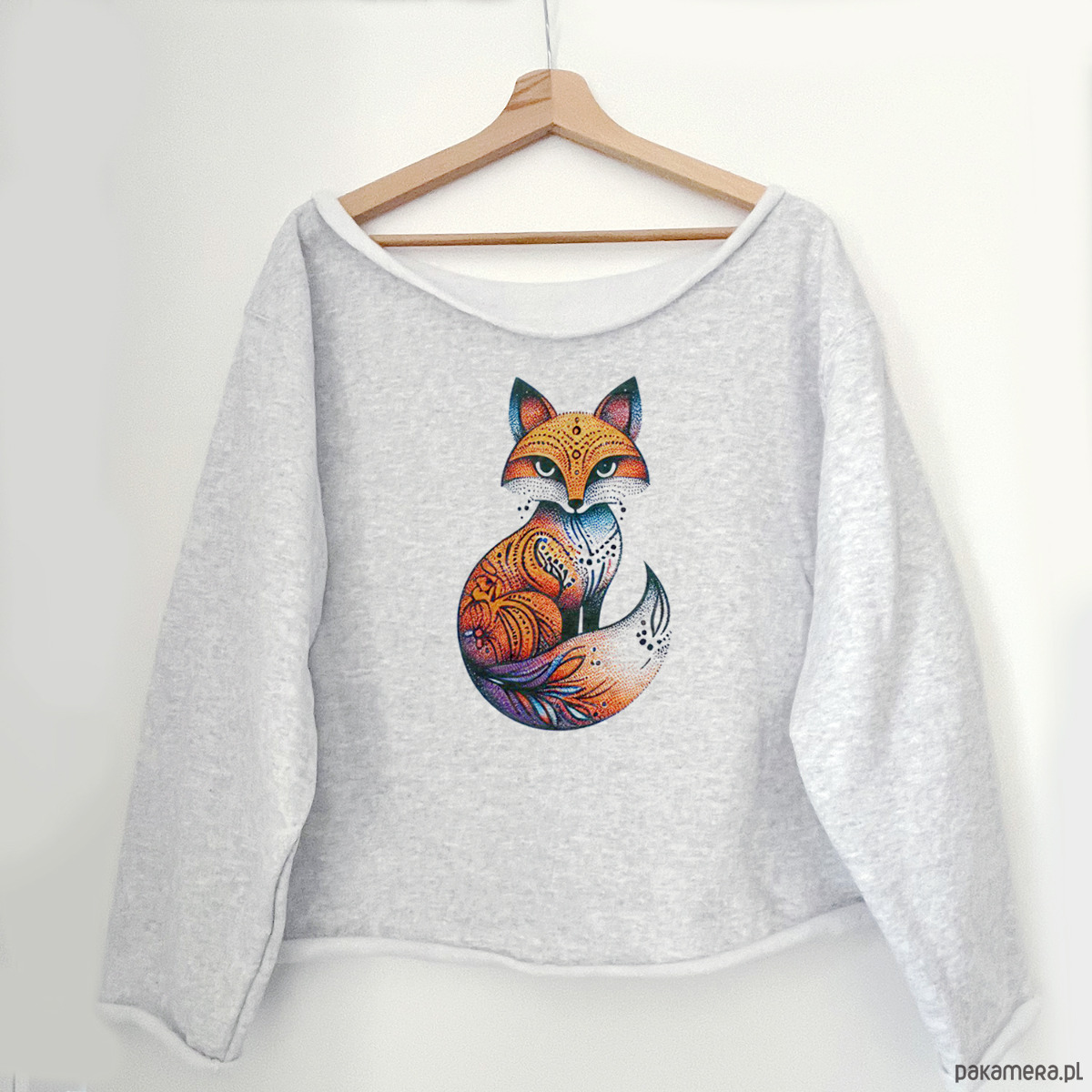 Lis dotwork Szara bluza cięta Bez ściągaczy