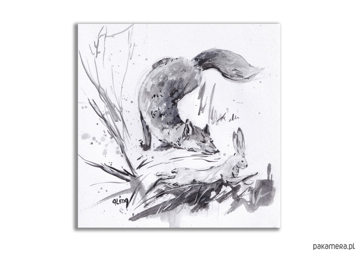 Obraz ręcznie malowany, wykonany w technice mieszanej; na białym, wysokogatunkowym papierze.