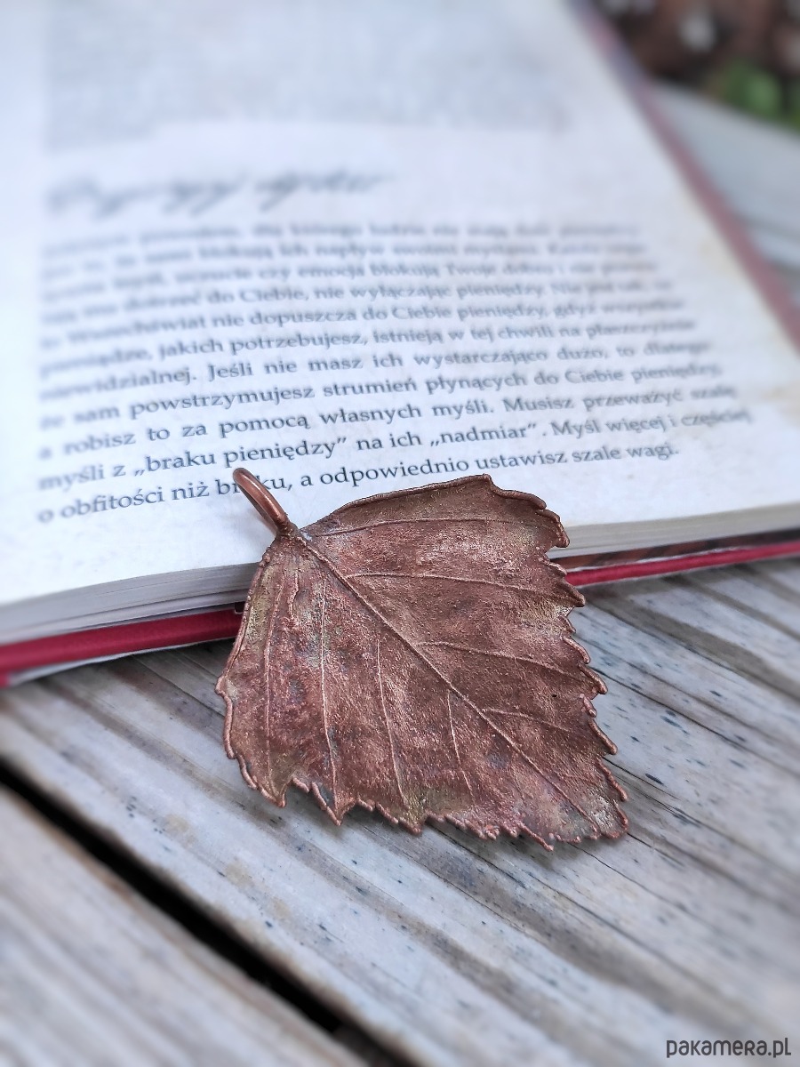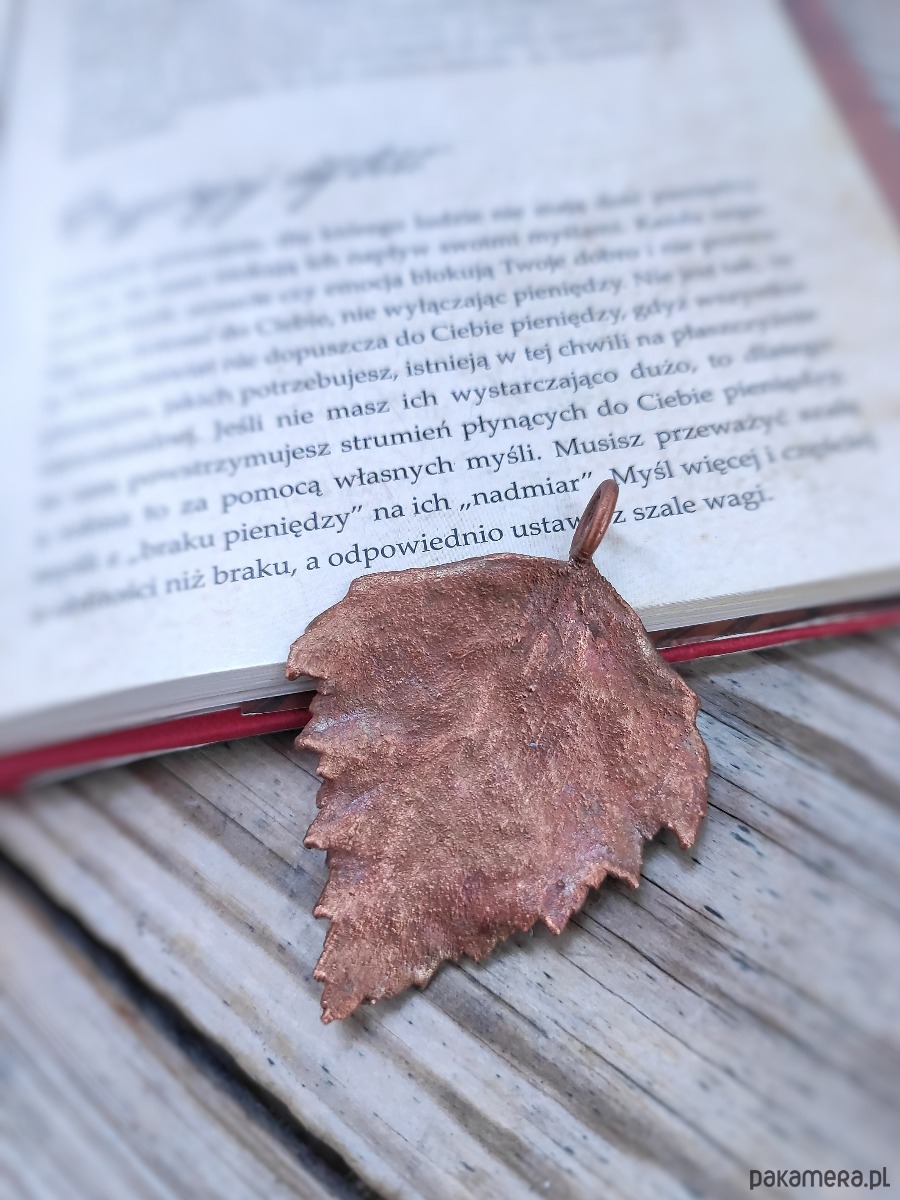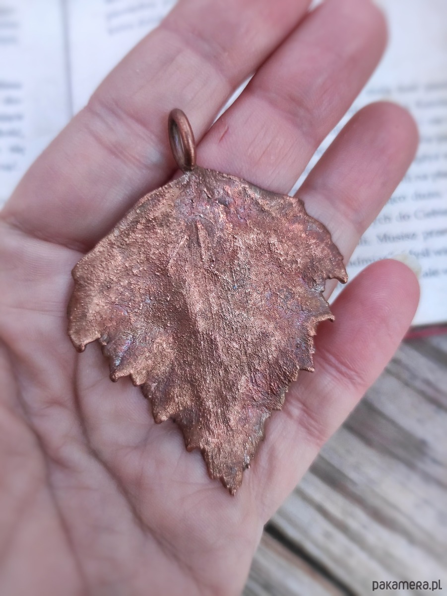 Zawieś go na rzemieniu lub łańcuszku, a będzie Ci towarzyszył gdziekolwiek i kiedykolwiek będziesz potrzebować wsparcia tego mistycznego metalu, jakim jest miedź i drobiny natury w formie liścia.