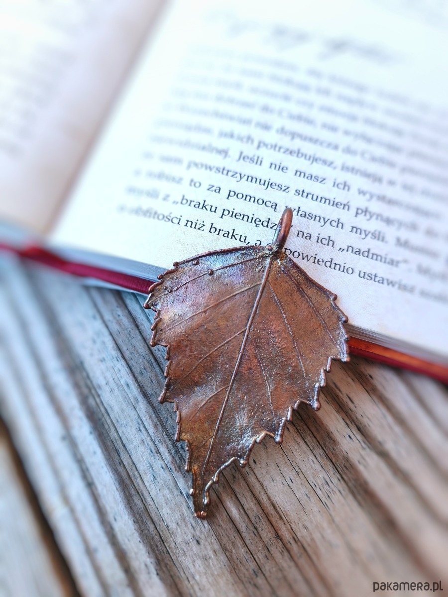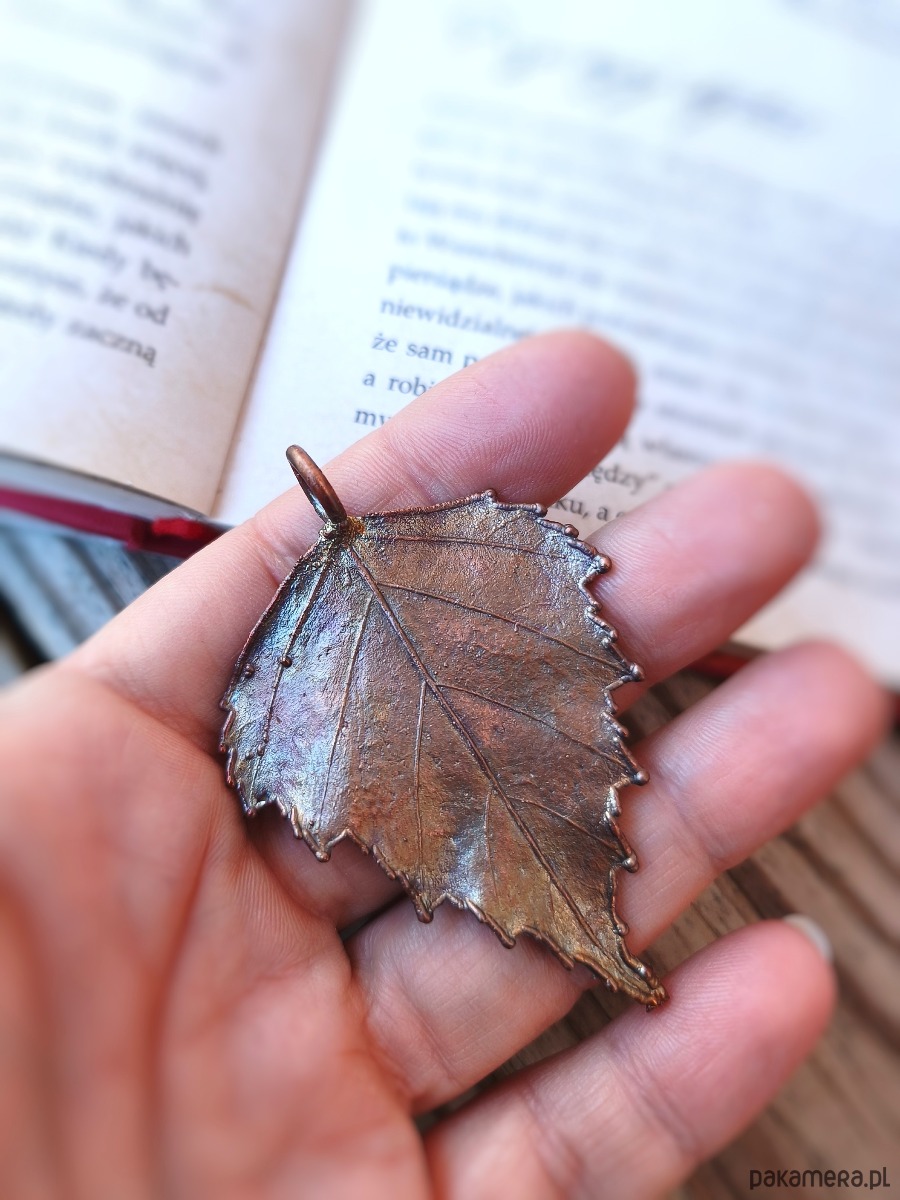 - materiał: miedź, naturalny liść brzozy
